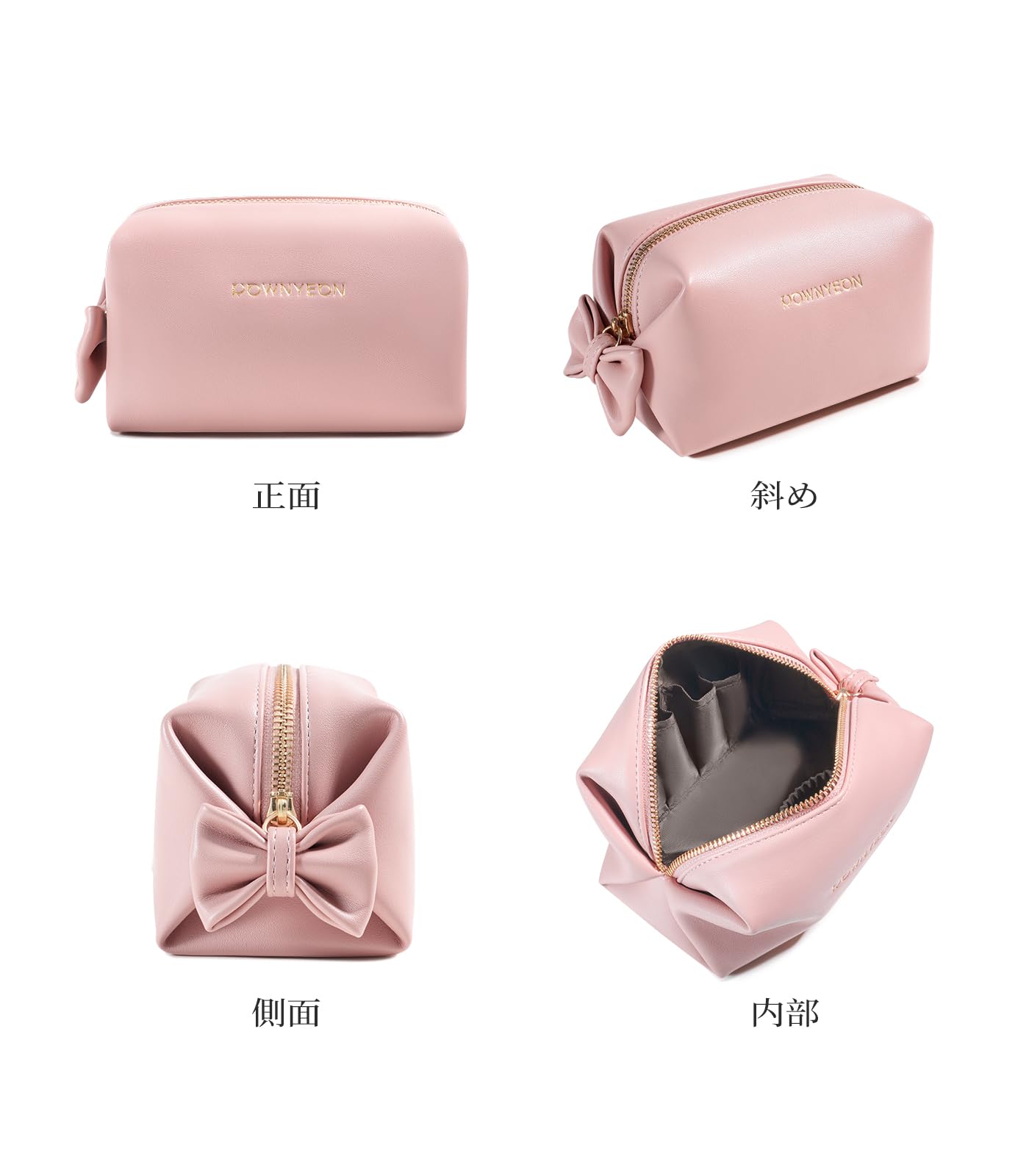 Rownyeon メイクポーチ 持ち運び リボン かわいい コンパクト 仕切りたくさん 化粧ポーチ 韓国風 防撥水 PU 小物入れ ミニ 小さめ ピンク 誕生日贈り物 ギフト