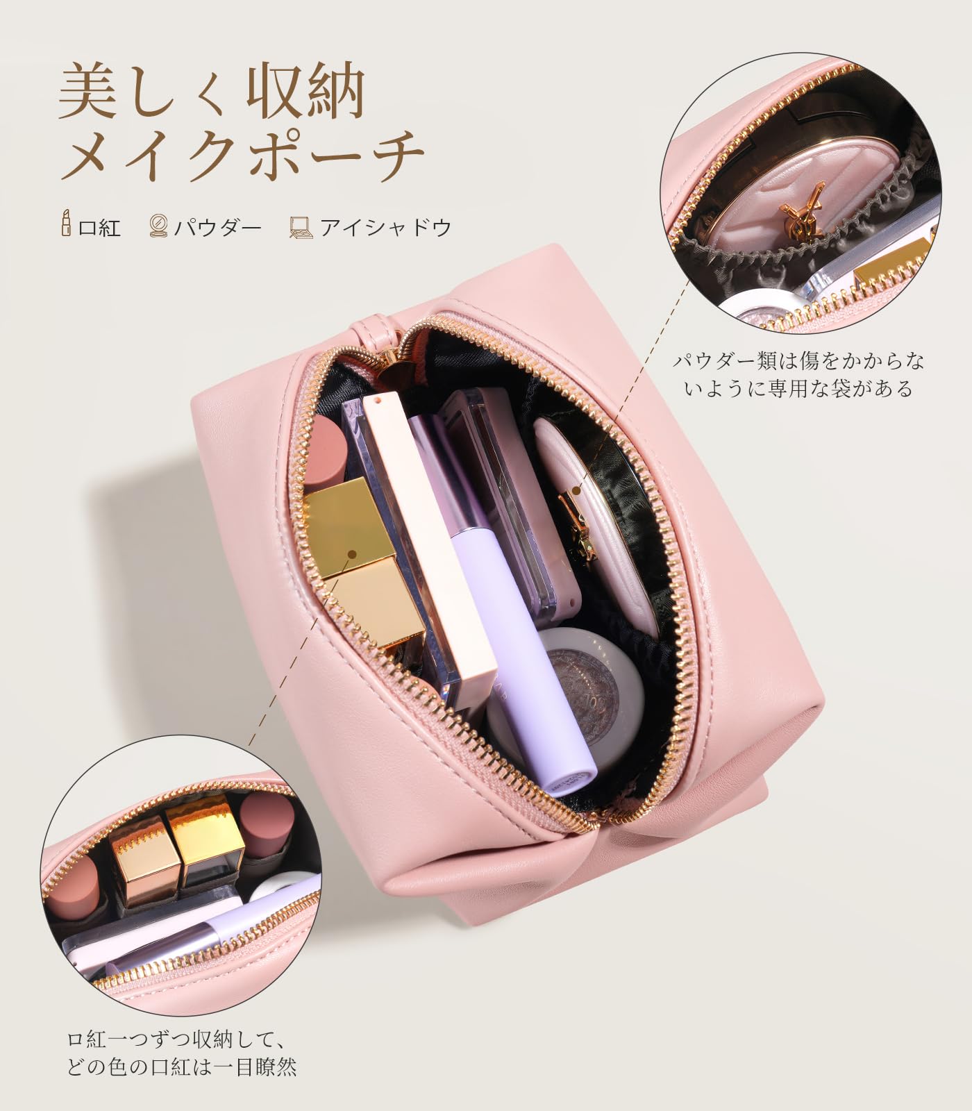 Gonex 化粧ポーチ メイクポーチ ミニ ポーチ おしゃれ コスメポーチ 機能的 大容量 防水 小物入れ 軽量 防水 出張 旅行 化粧バッグ ポーチ レディース (ローズゴールド)