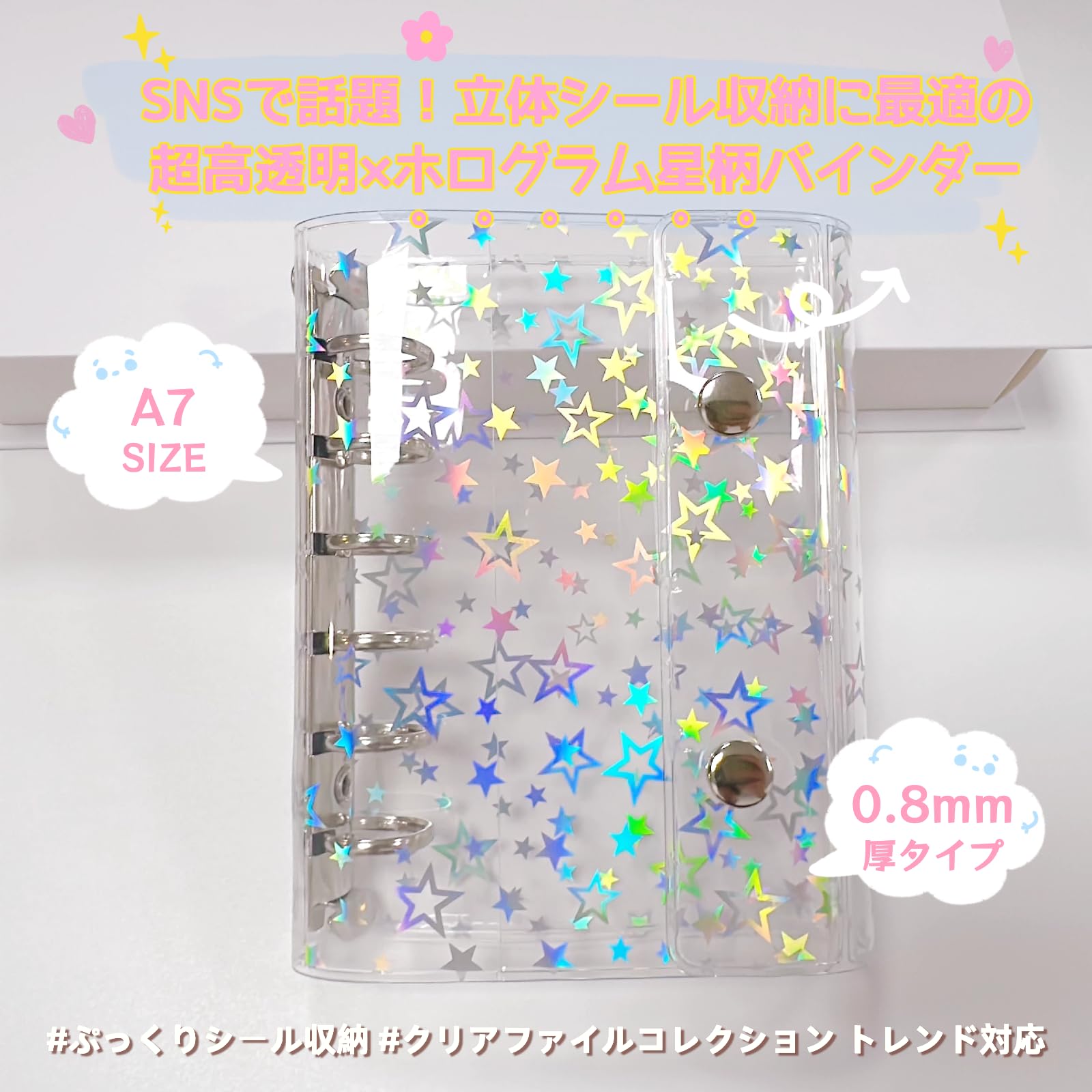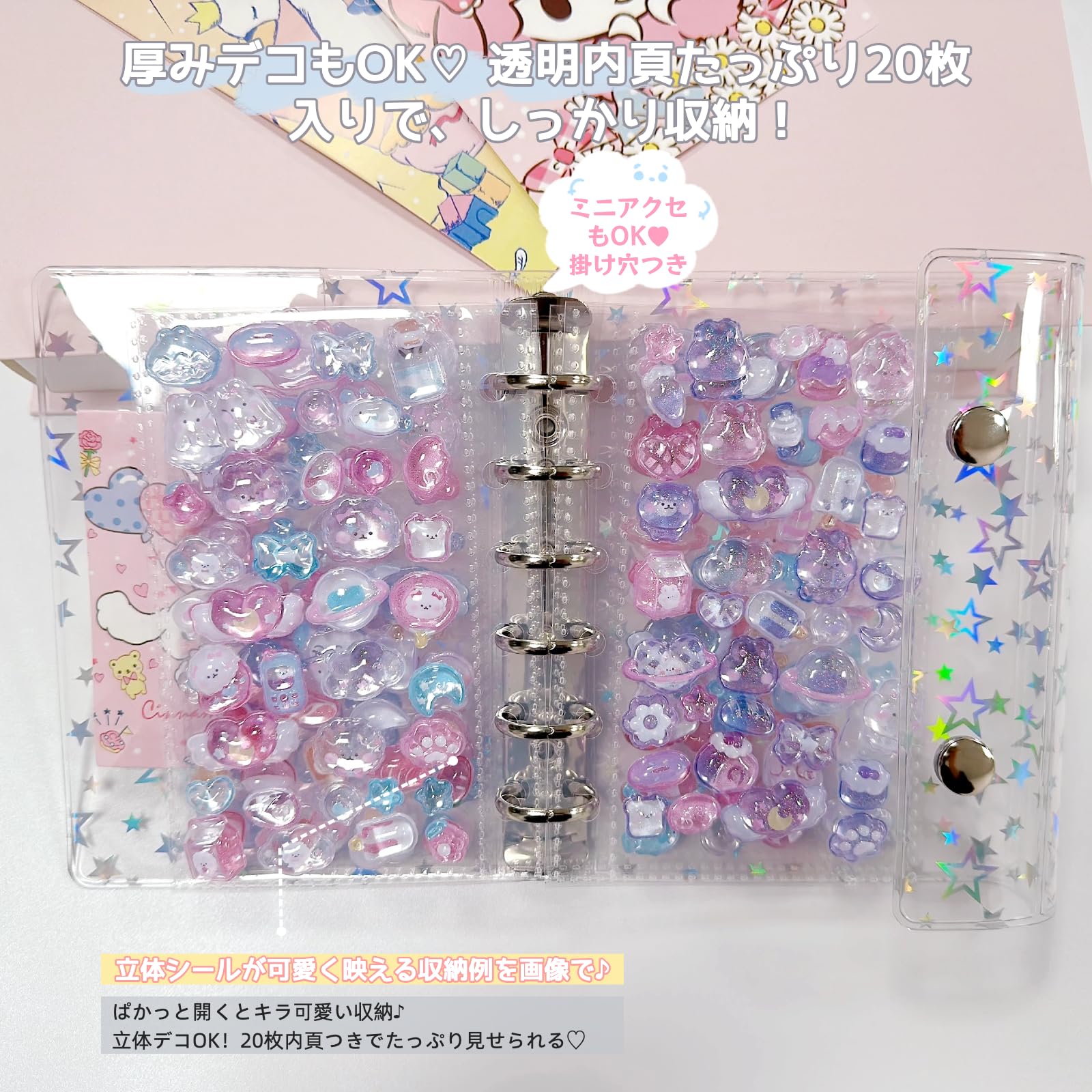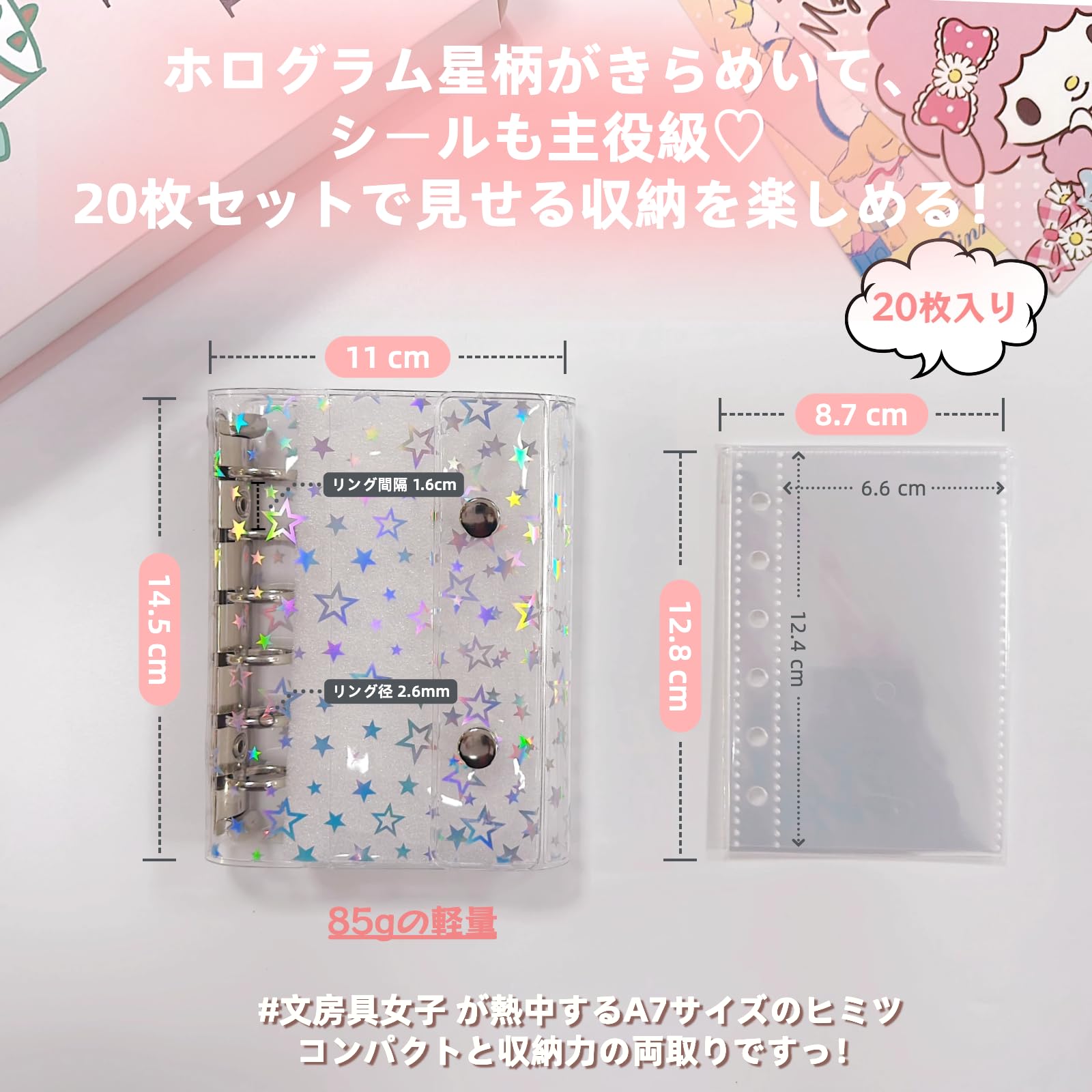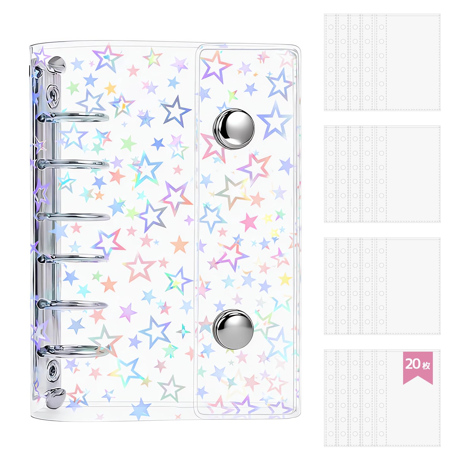 zenoco シール帳 透明バインダー 推し活グッズ A7 女の子 はがせる 6穴 シール収納 厚め 台紙付き(リフィル20枚セット・レーザースタータイプ)