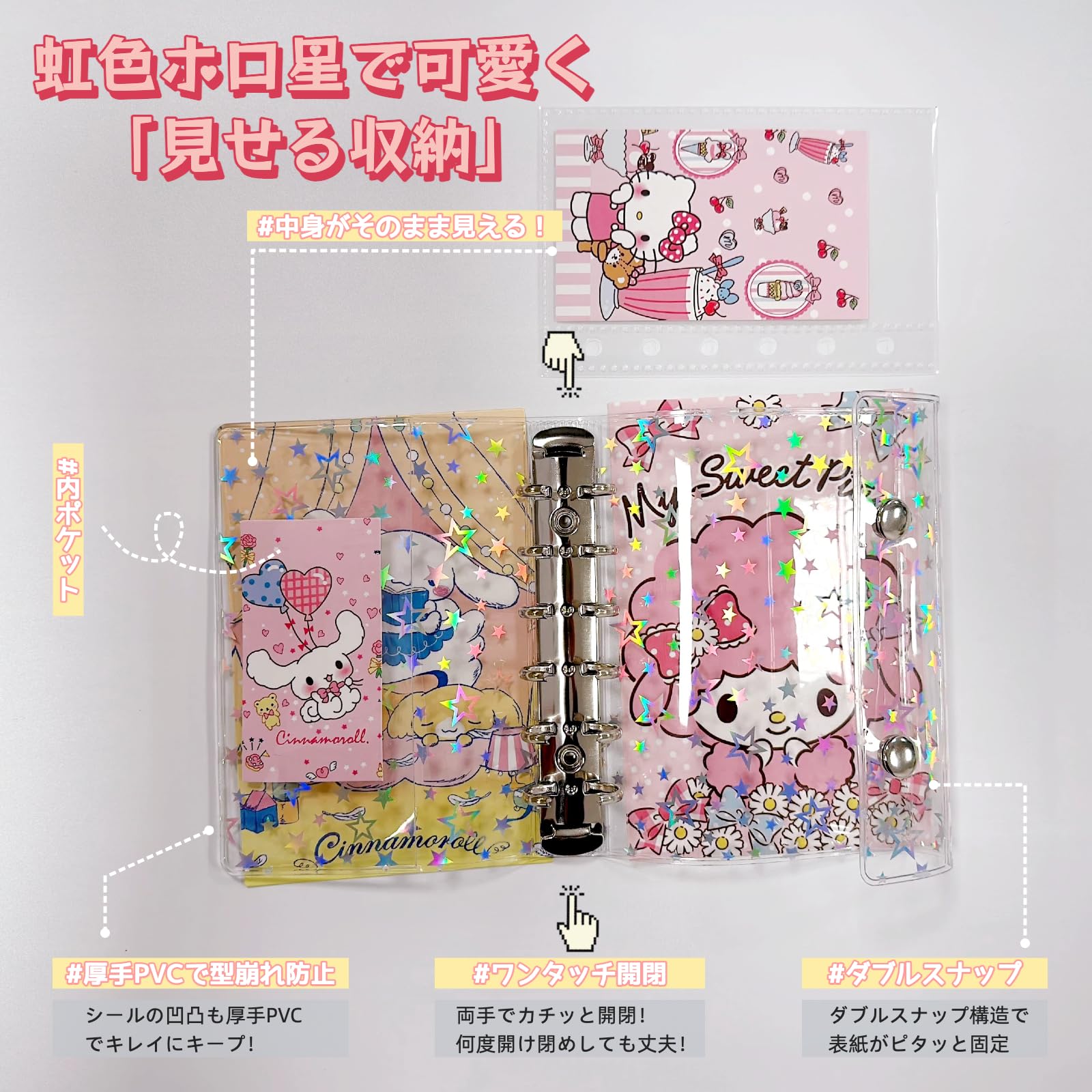 zenoco シール帳 透明バインダー 推し活グッズ A6 女の子 はがせる 6穴 シール収納 厚め 台紙付き(リフィル20枚セット・レーザースタータイプ)