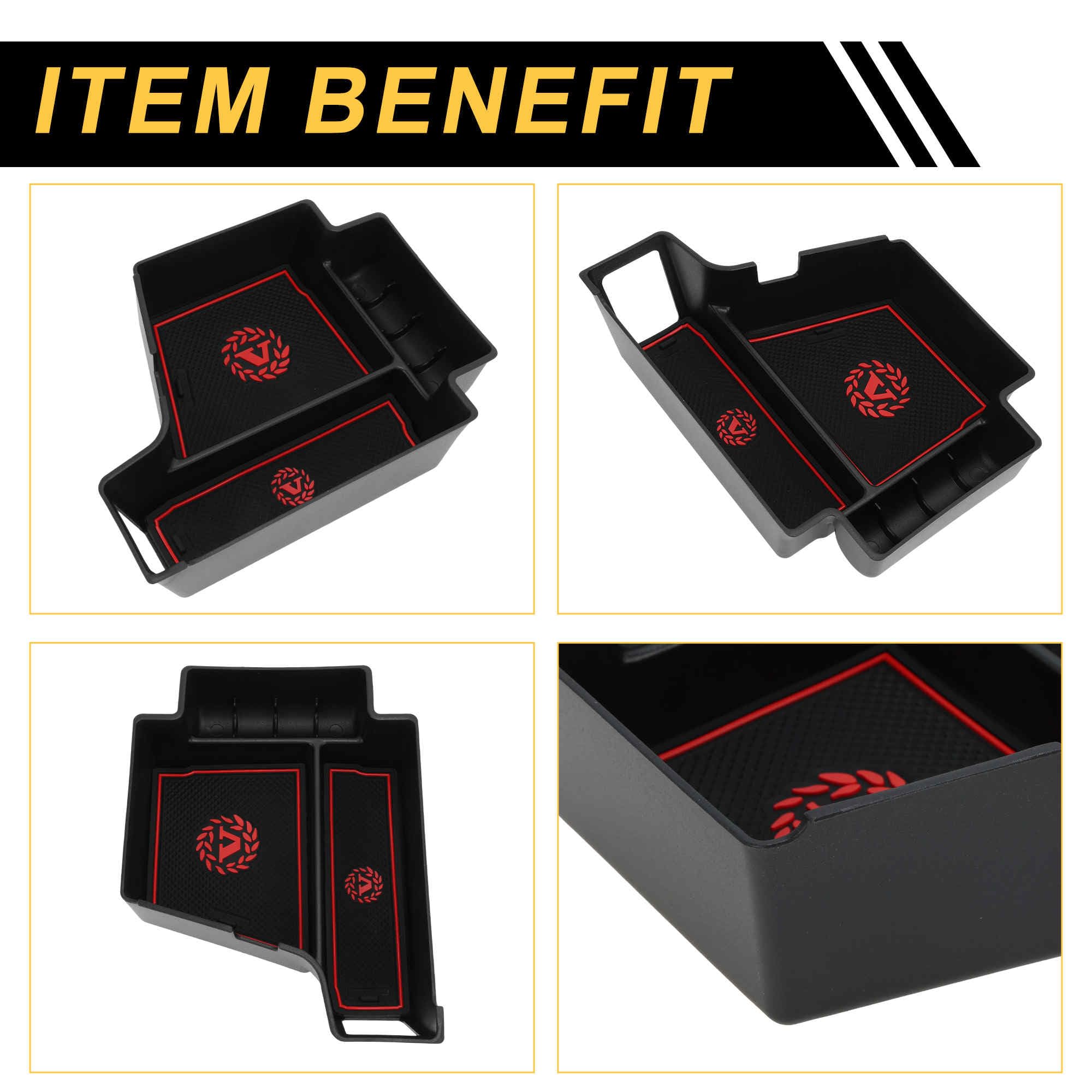 FUELHOOD マツダ CX-5 KFシリーズ用 センターコンソールアームレストオーガナイザートレー アームレストインサートトレー 収納ボックス ABS ブラック レッド