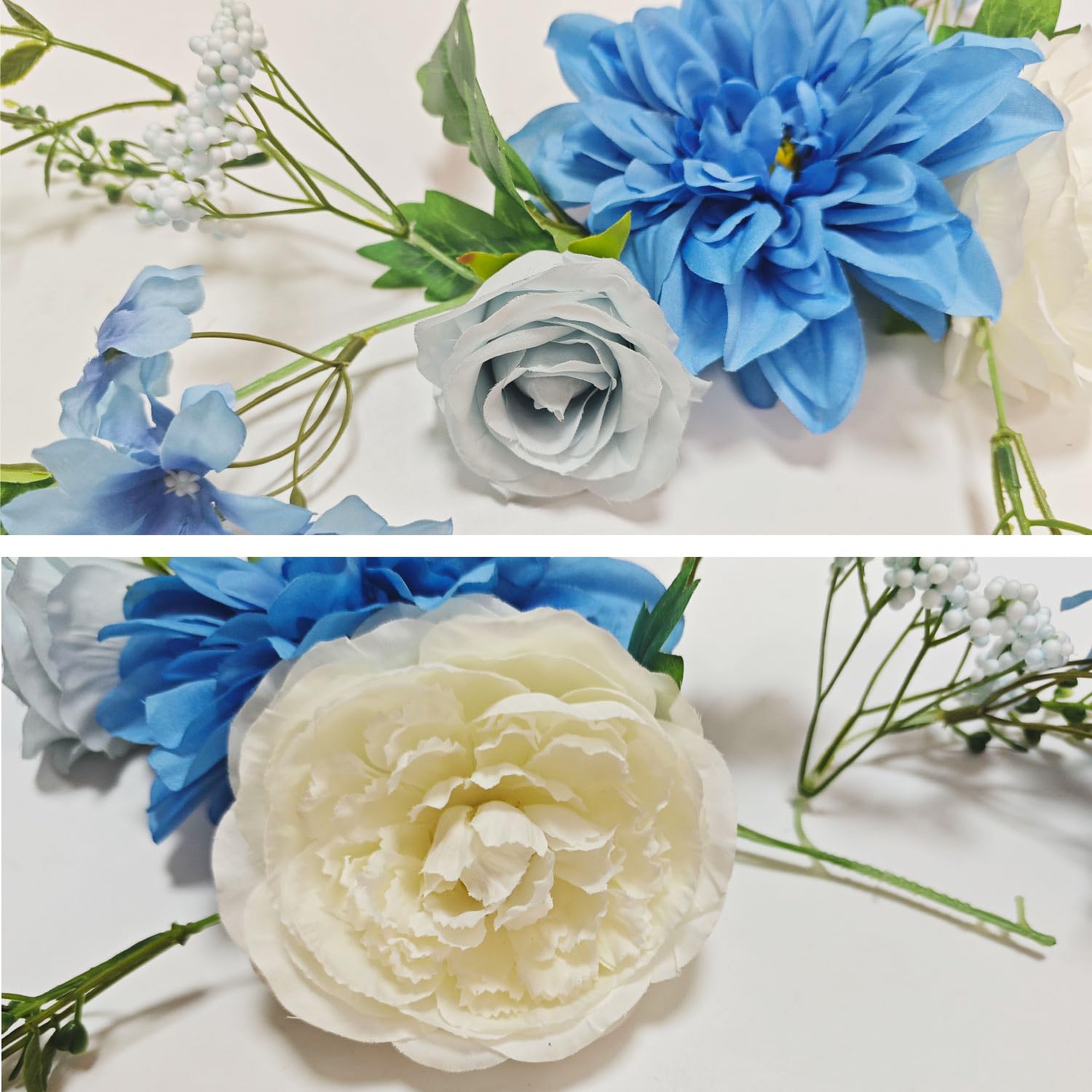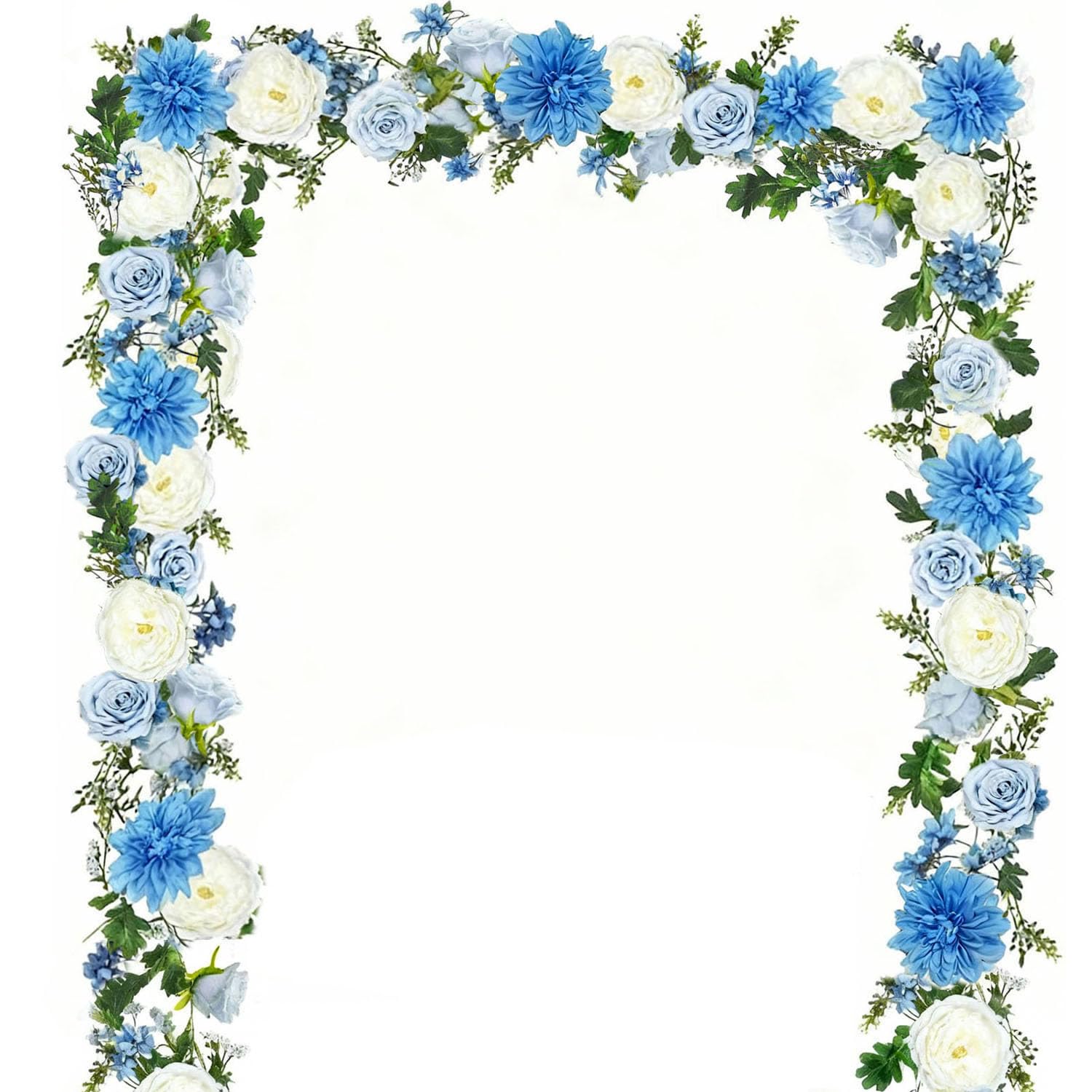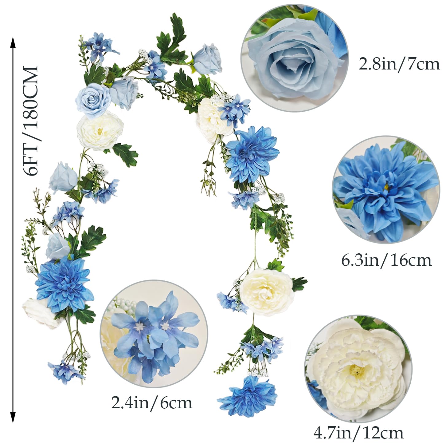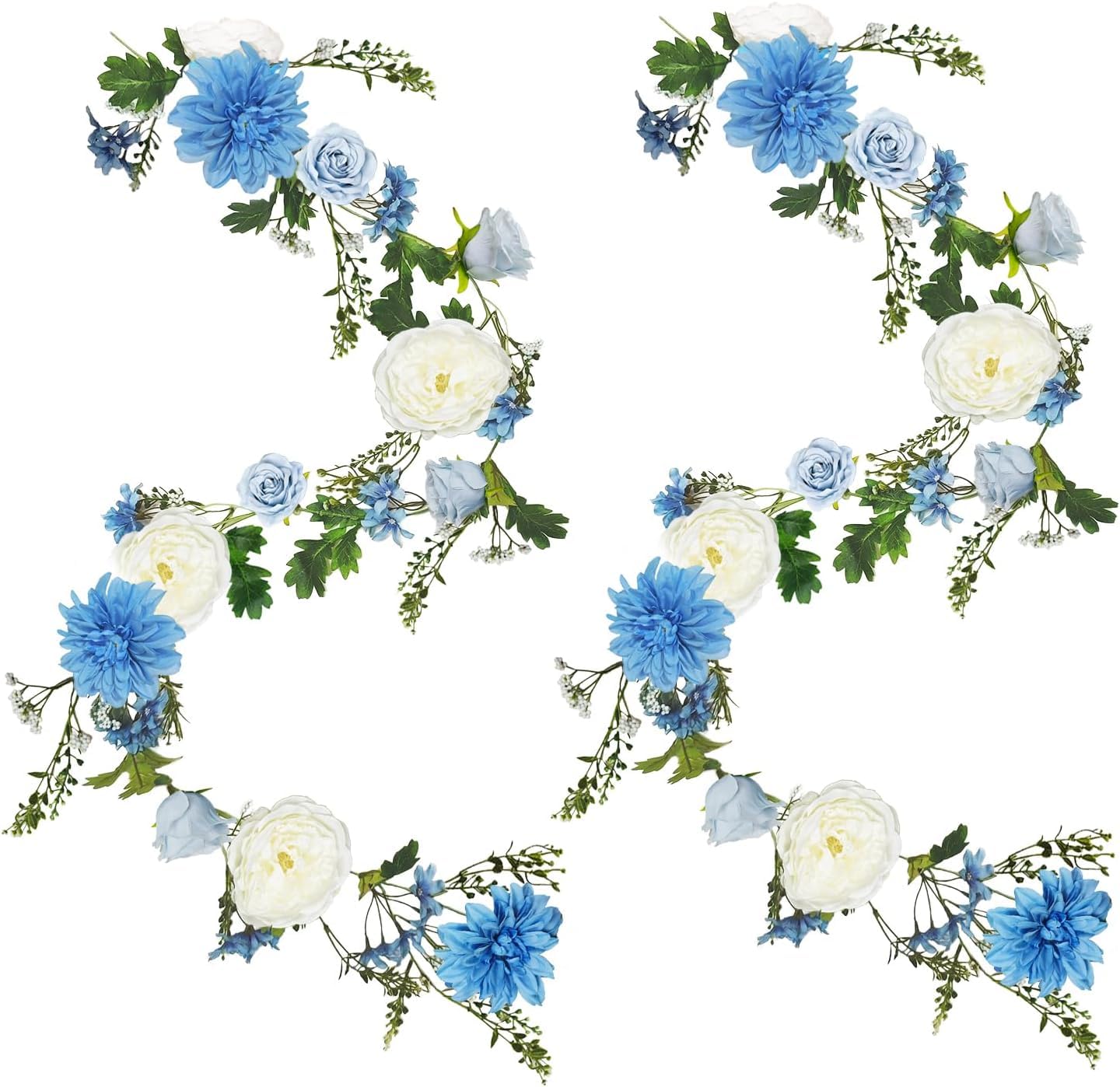 OrgMemory バラの花のつる 各6フィート 2個 牡丹ガーランド シルクフラワーつる 青と白の牡丹ガーランド ウェディングアーチパーティー ホームテーブルランナー マントルデコレーション用
