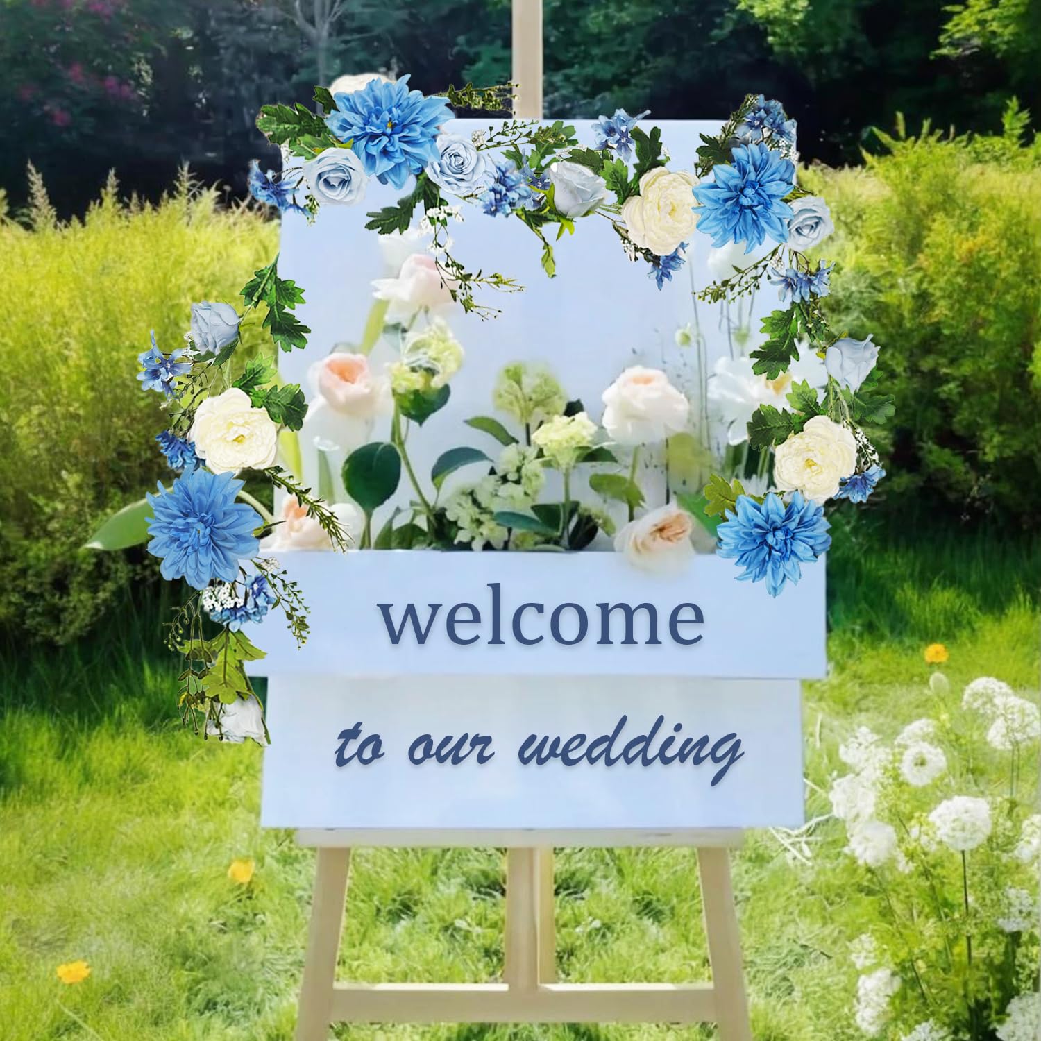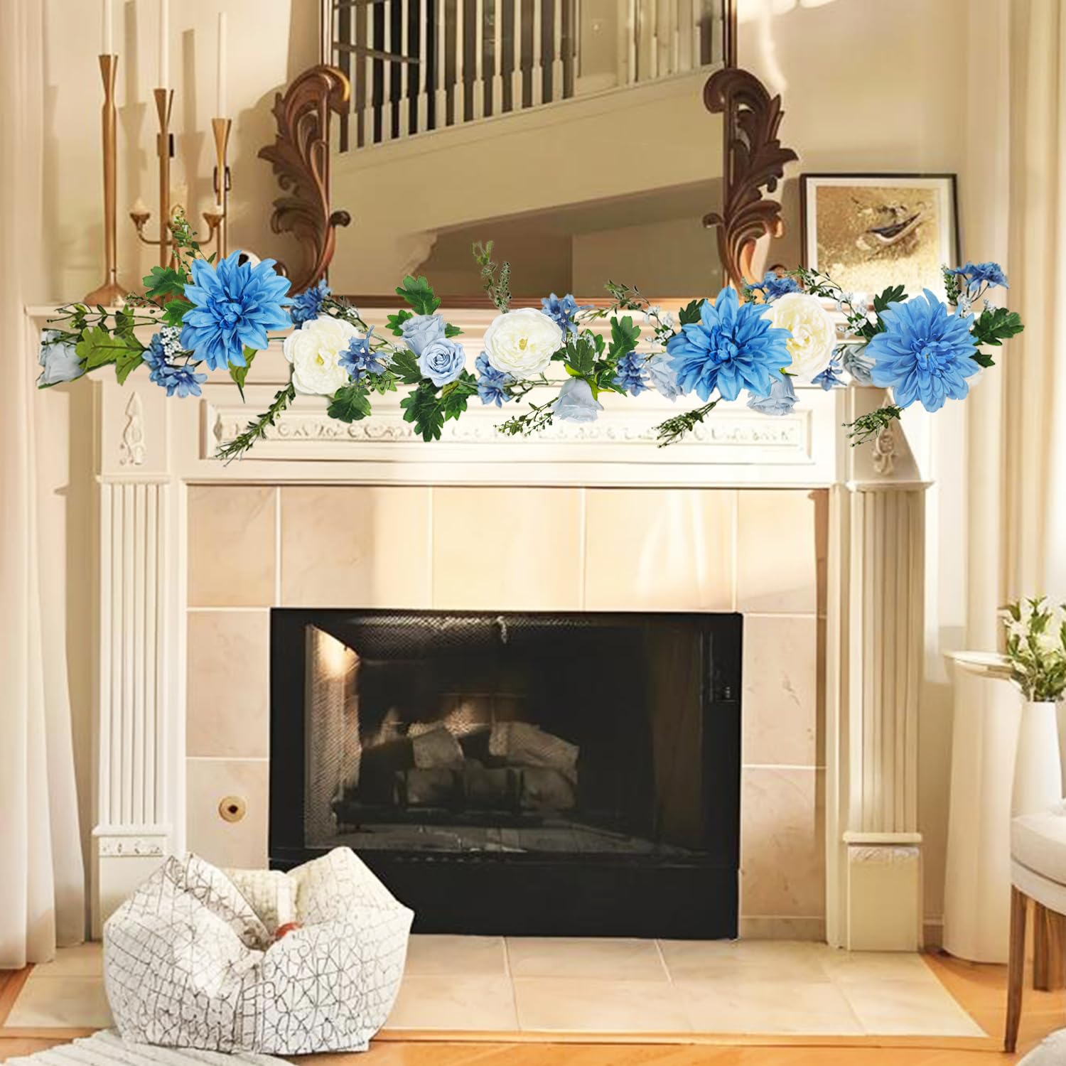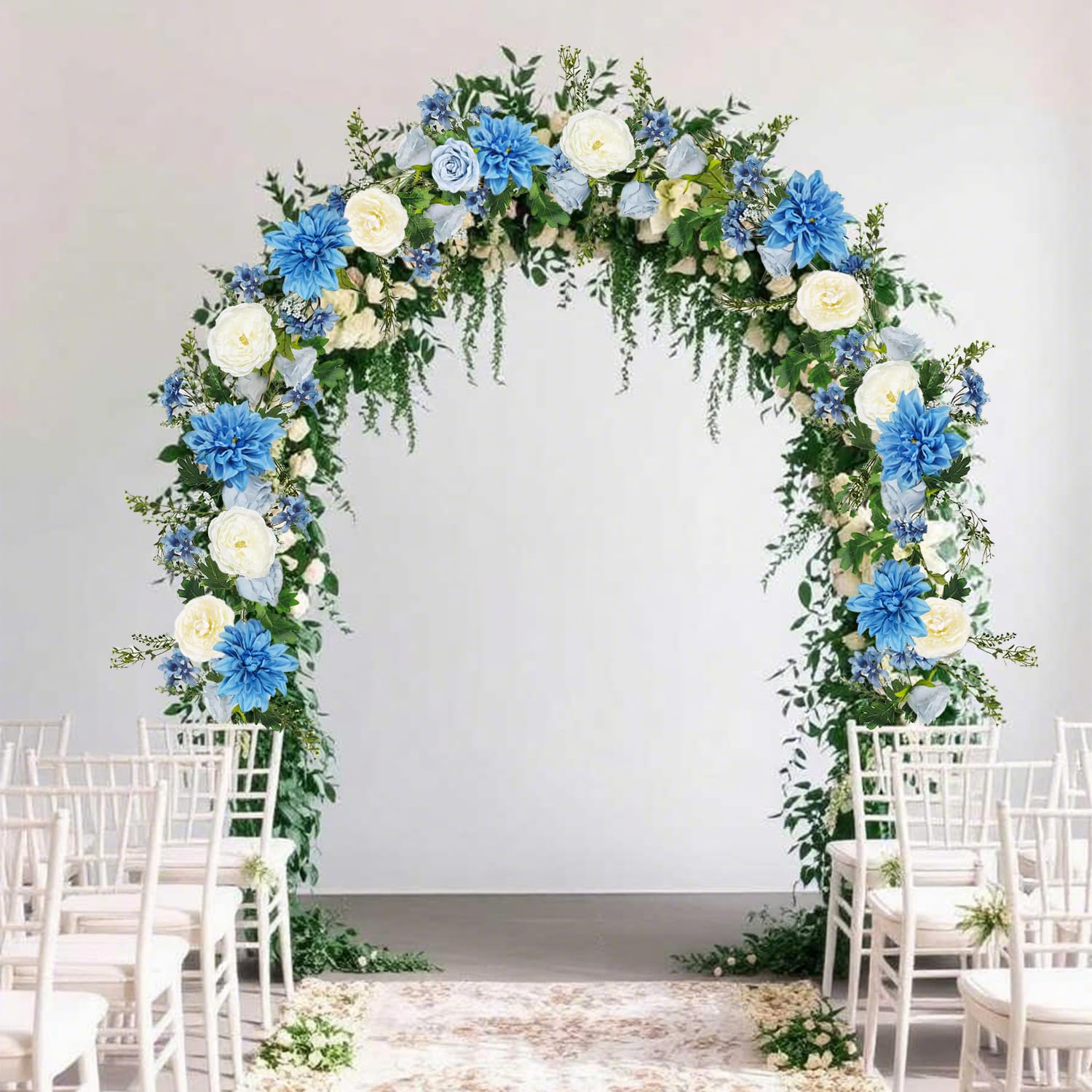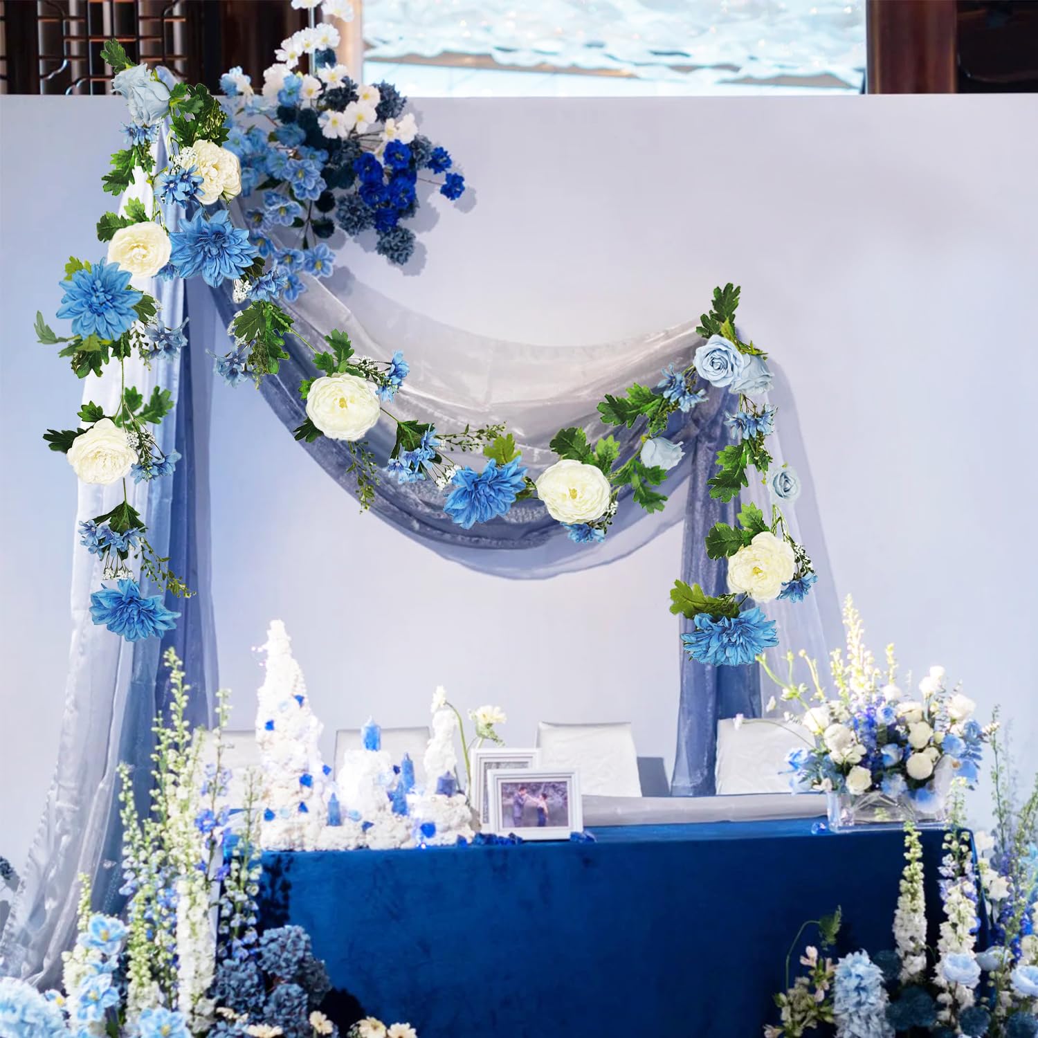 OrgMemory バラの花のつる 各6フィート 2個 牡丹ガーランド シルクフラワーつる 青と白の牡丹ガーランド ウェディングアーチパーティー ホームテーブルランナー マントルデコレーション用