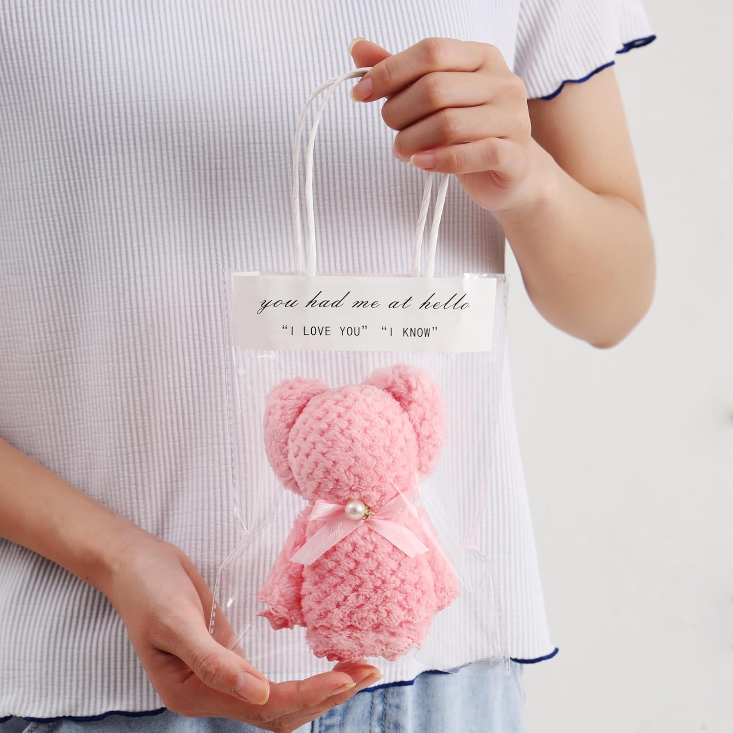 プチギフト、ハンカチ、お礼の品、退職祝い、タオル・ハンカチ、個包装、かわいいクマさんタオル、女性向けギフト、お返し、退職祝い、退院祝い、新築祝い、結婚祝い、景品、クリスマスプレゼント、ギフトバッグ付き(18枚入り)