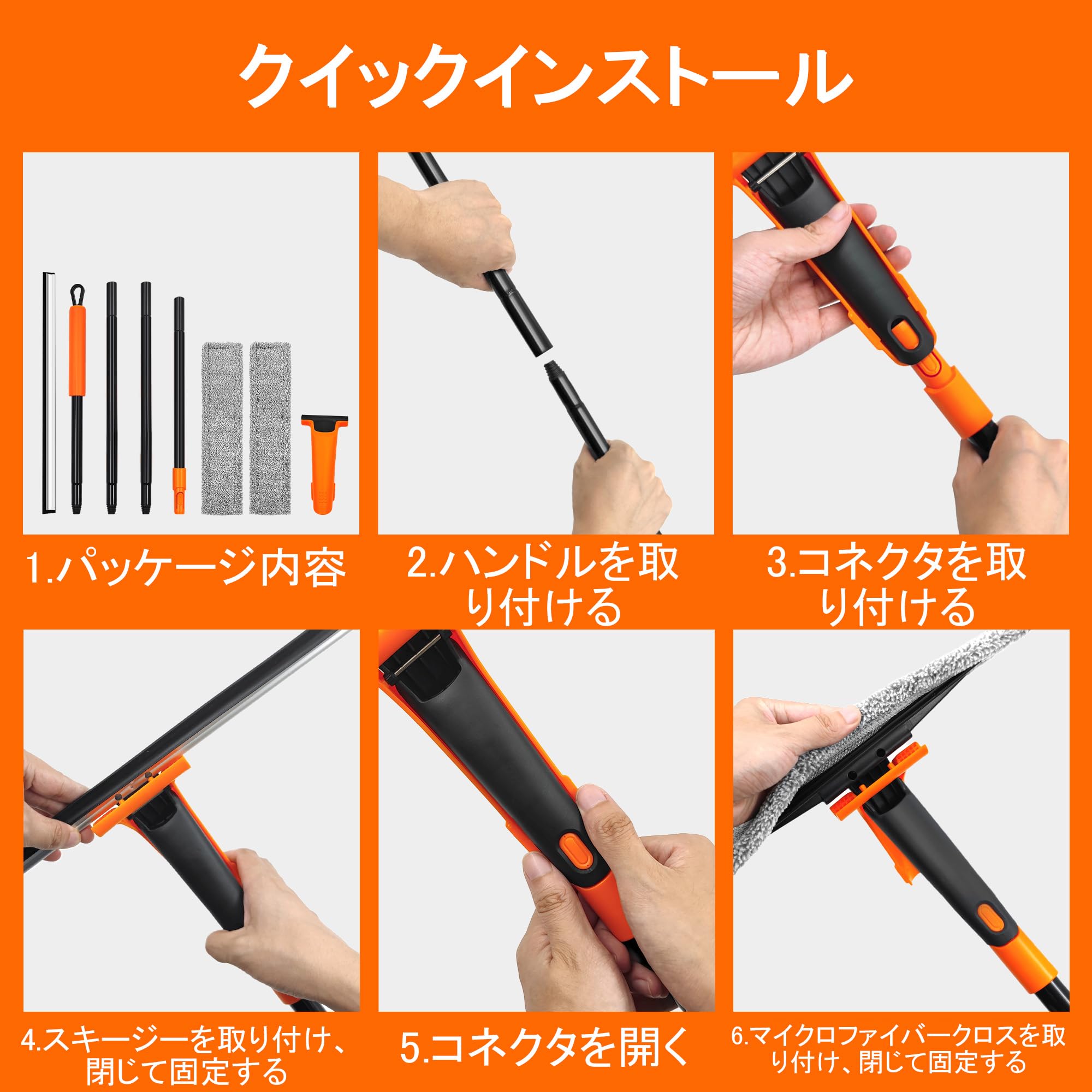 JEHONNスクイジードライワイパー153cm伸縮可能,水切りワイパー風呂ガラスワイパー鏡/窓/地面/壁/天井の水気を掃除(オレンジ)