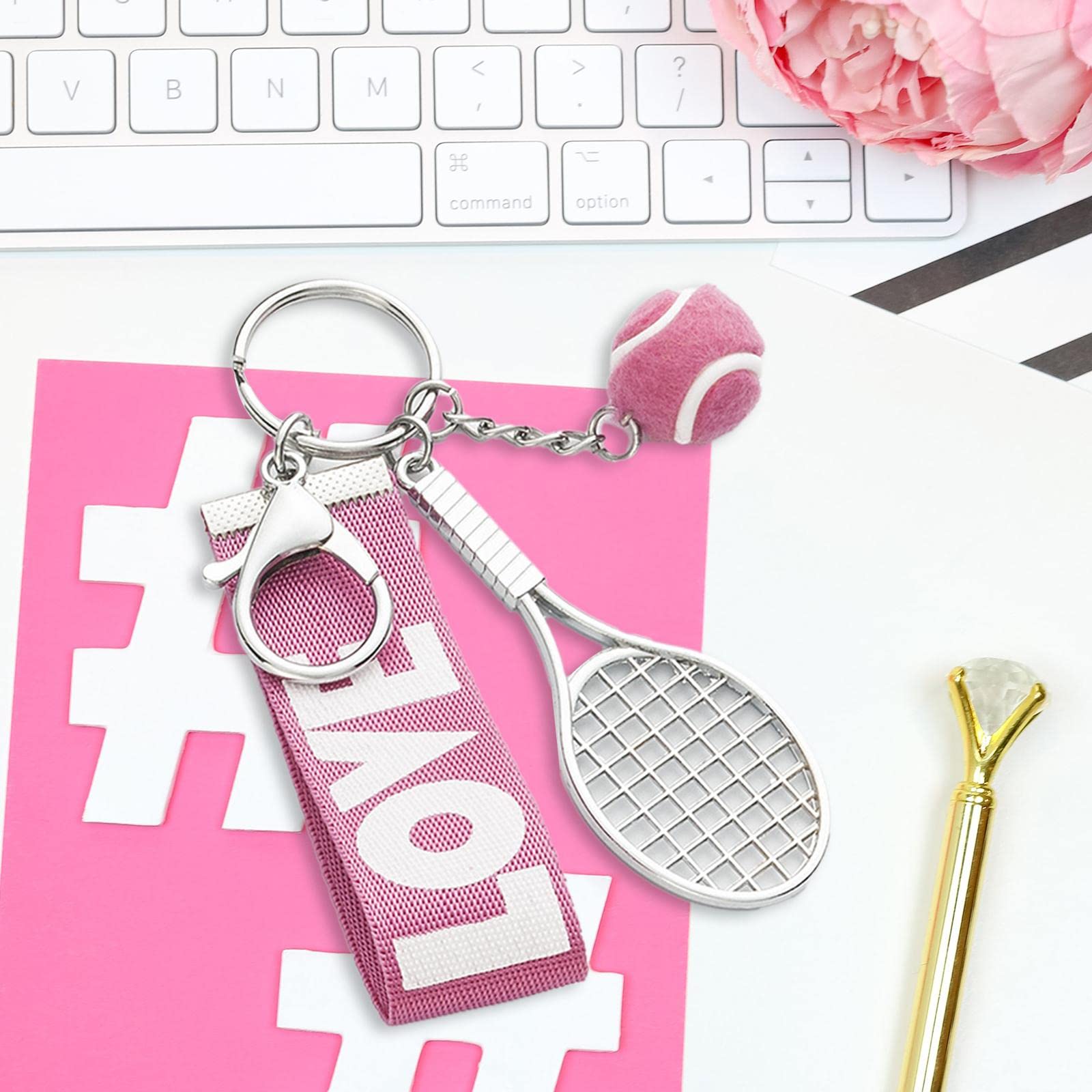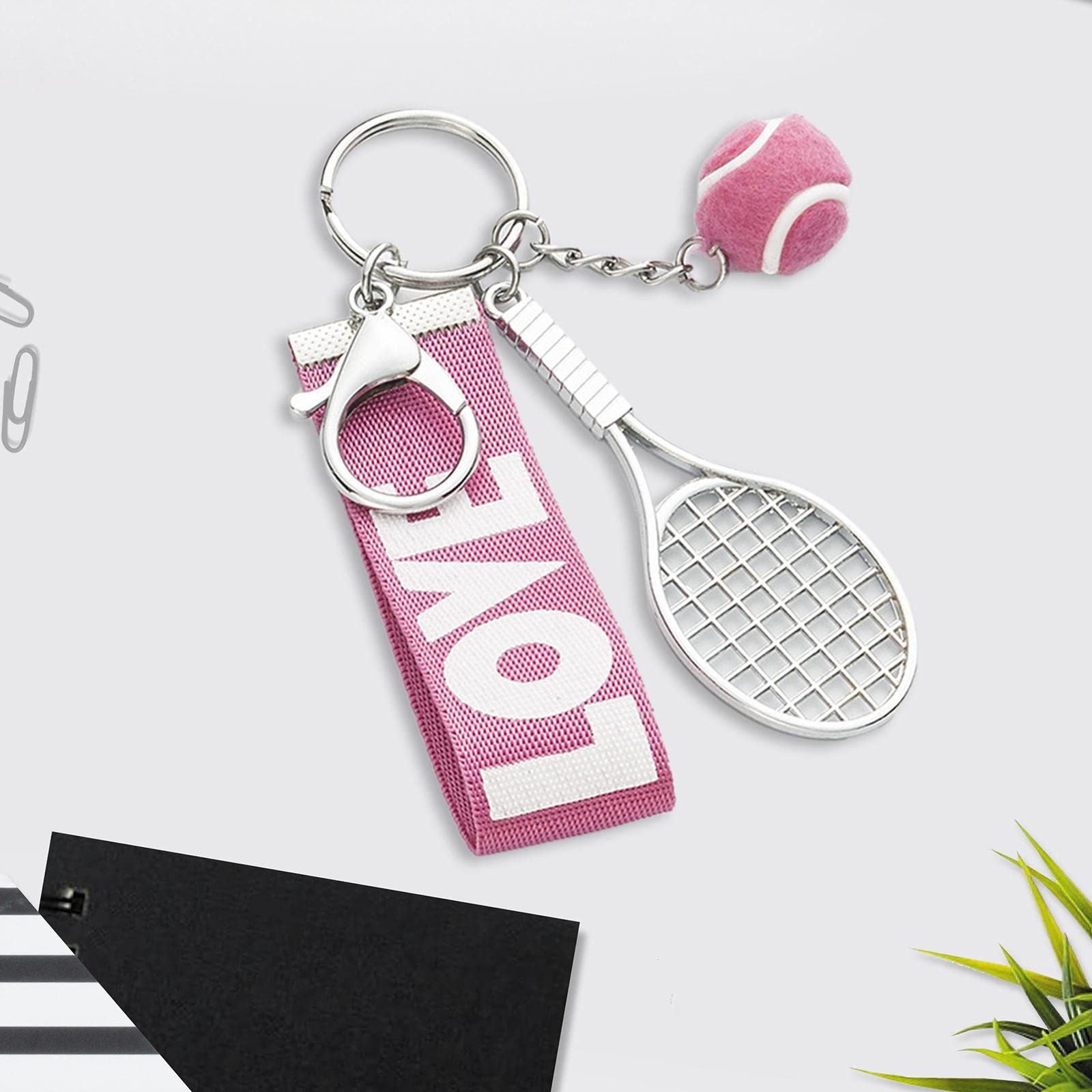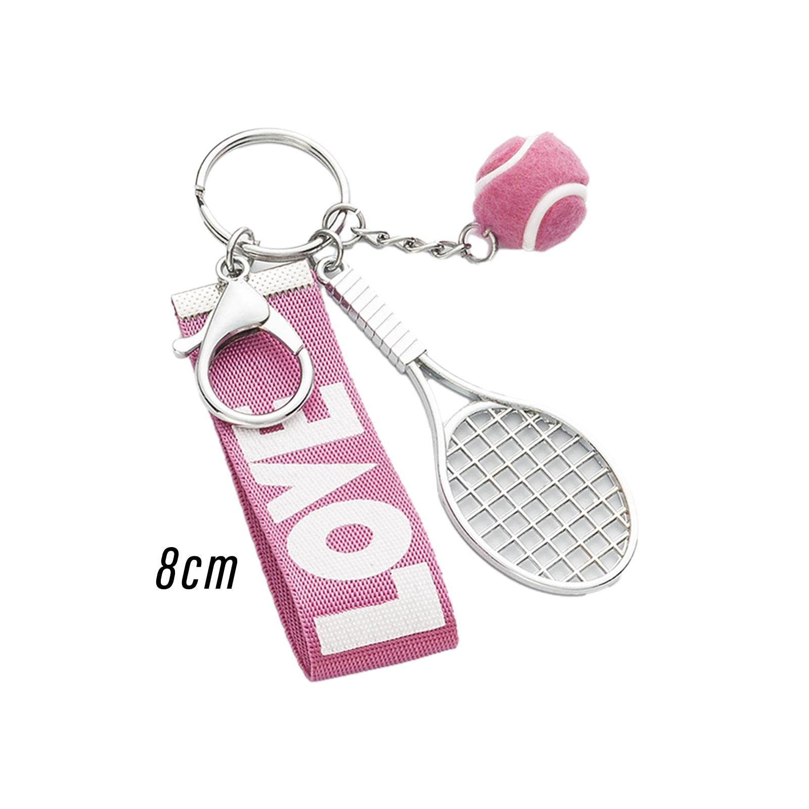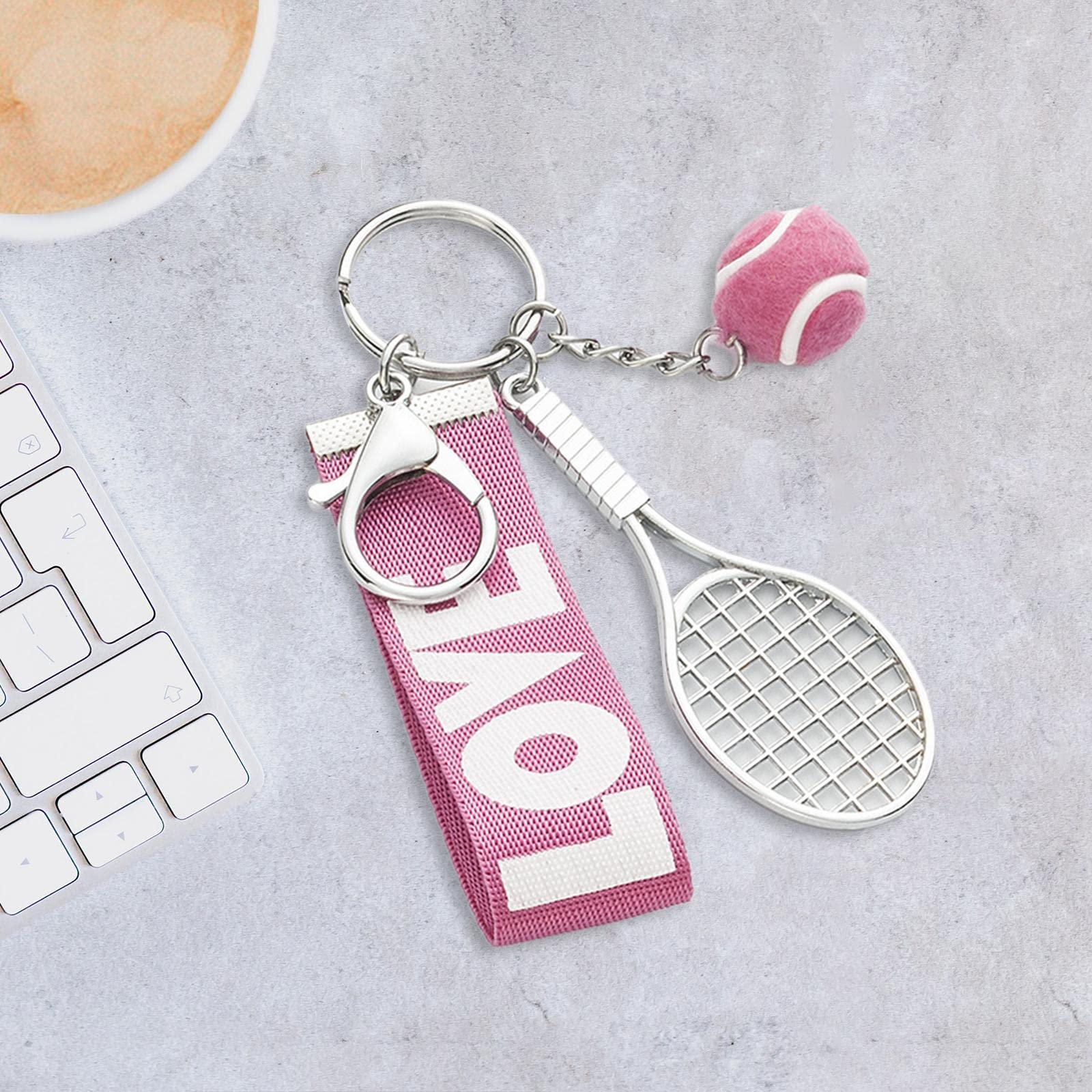 P Prettyia テニスラケットキーホルダーキーリング、チームテニス愛好家のコーチのための絶妙なミニテニスボールペンダントキーフォブ, ピンク