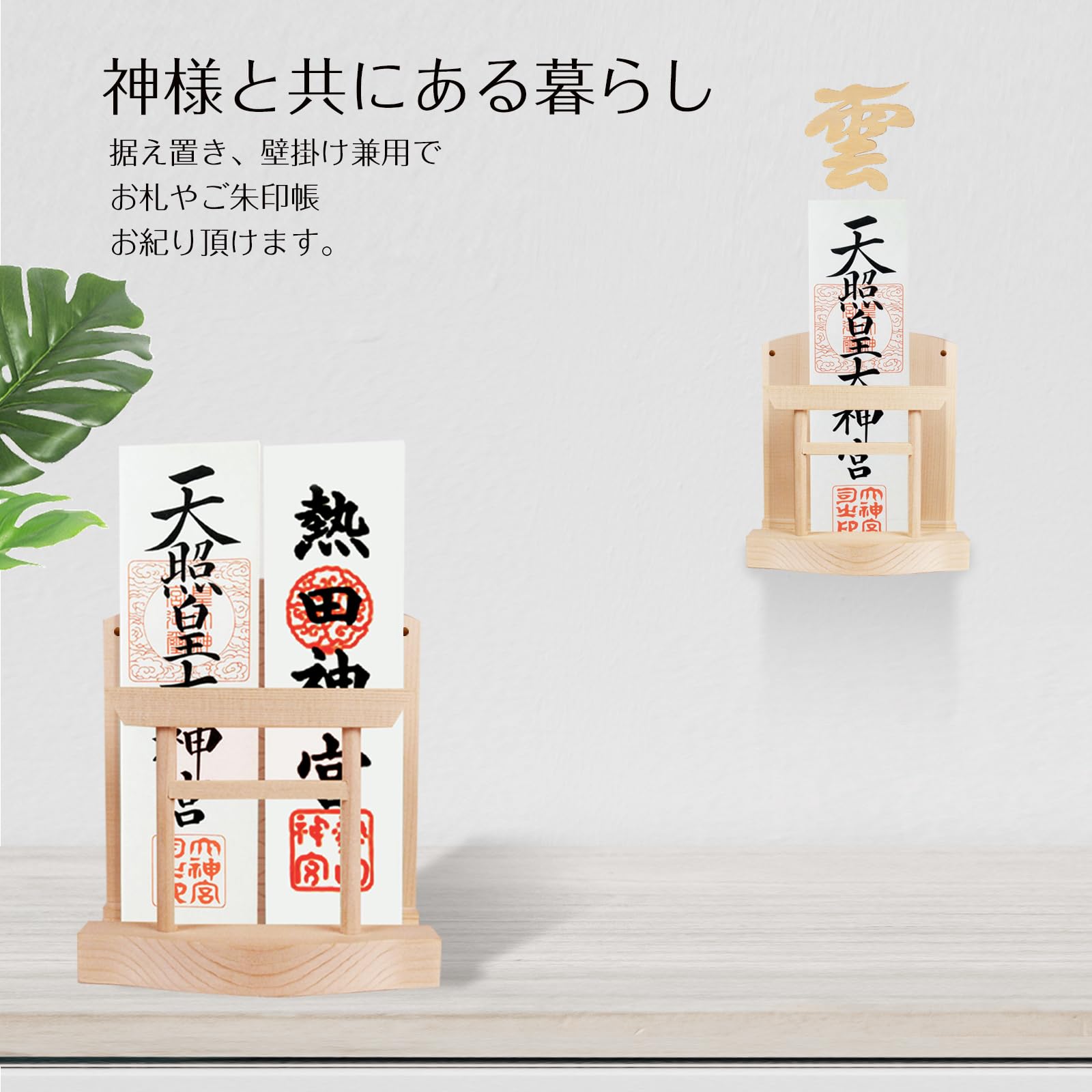 神棚&雲セット お札立て 御札立て お札 御札 神具 鳥居付き お札立て モダン 天然木使用 簡易神棚 おしゃれ 神棚ホルダー 置き型 壁掛け 簡単設置