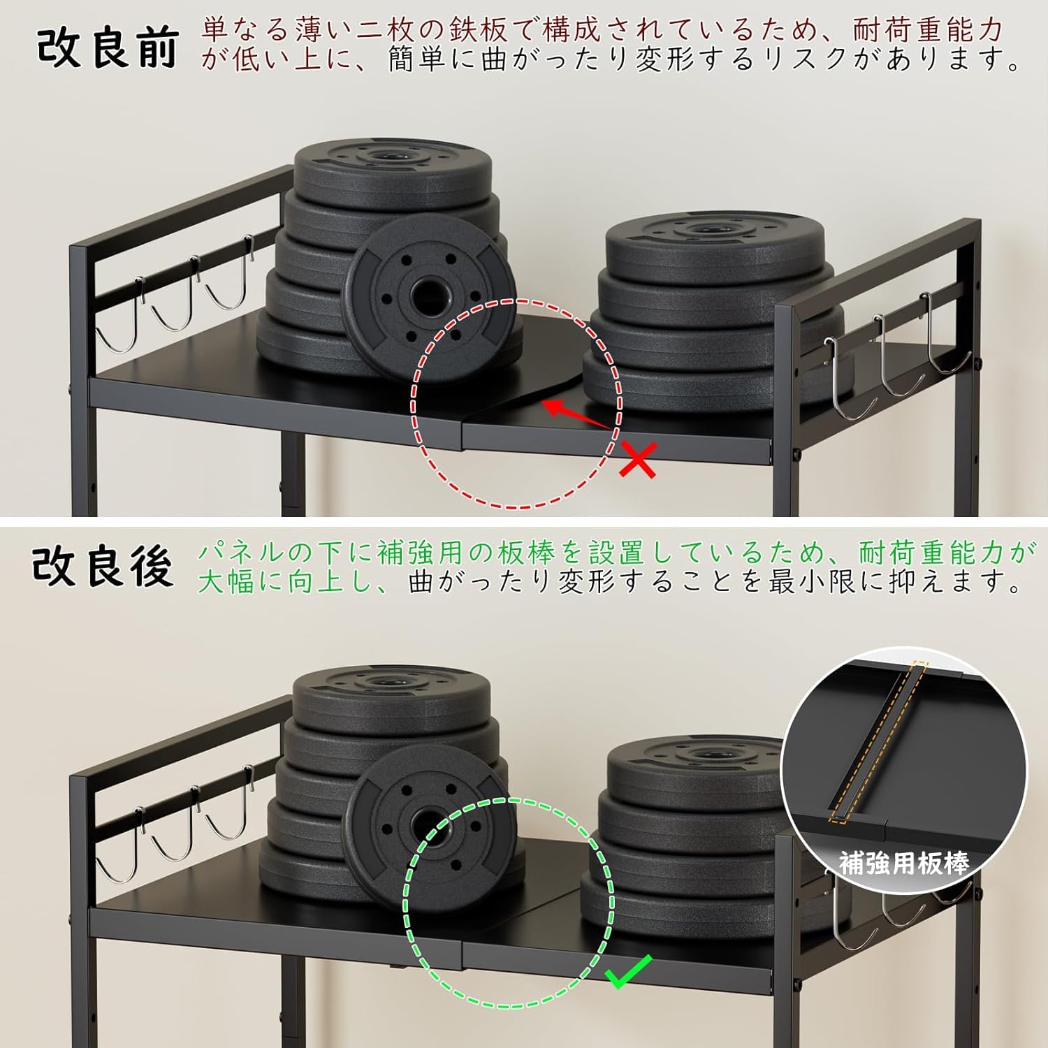 GAWOOW レンジ上ラック レンジラック 伸縮式 幅(40-60cm) 棚板高さ調節可 耐荷重70kg