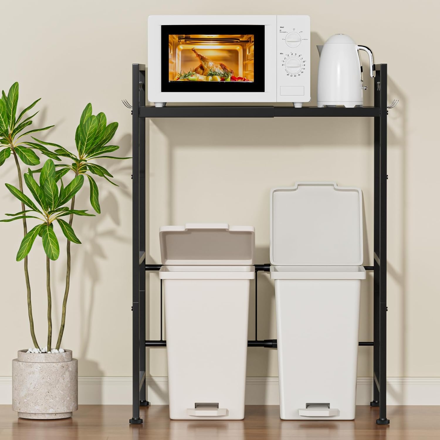 NETEL 3段伸縮式電子レンジ棚キッチンラック伸縮幅(43-63cm)棚板高さ調節 付属品一式付き、8フック付き(ブラック)