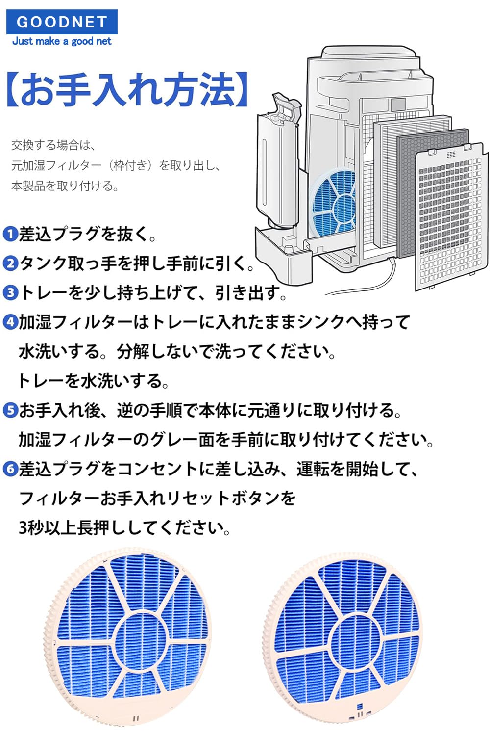 GOODNET H060518 加湿フィルター H060511 H060509 抗菌気化フィルター hd-500 hd-5018 hd-rx716 hd-rx709 hd-rx912 HD-RX919 ハイブリッド式 加湿器交換用フィルター 2枚入り (ブルー2枚入)