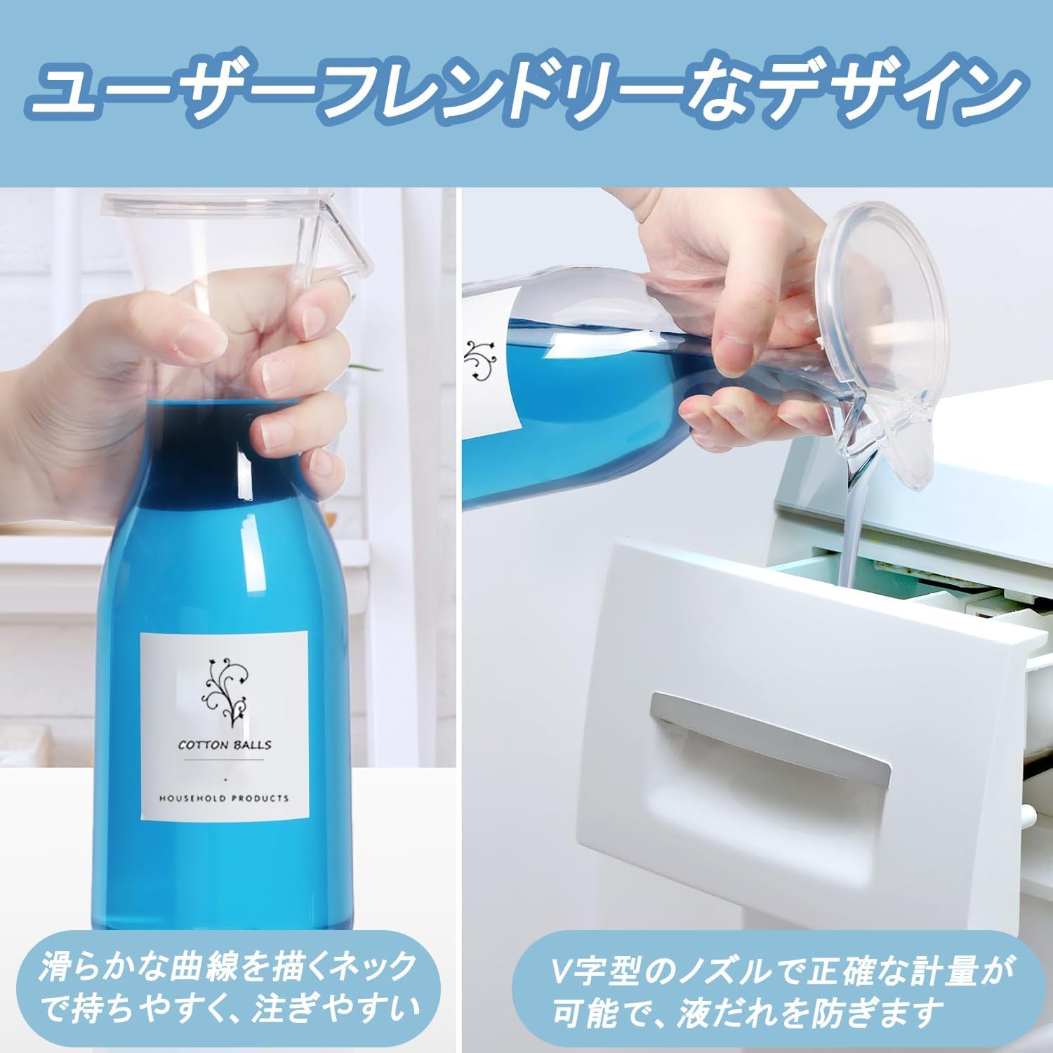 TeJoyce 洗剤 詰め替え用ボトル 3個セット ランドリーボトル 大容量 洗剤ボトル 防水ラベル付き 洗濯洗剤 柔軟剤 粉洗剤 漂白剤 容器 湿気を防ぐ 密閉 透明 洗剤ケース 液体容器 洗濯洗剤ボトル 詰め替え用ランドリーぼとる laundry soap dispenser (洗剤詰め替え用ボトル*3個)