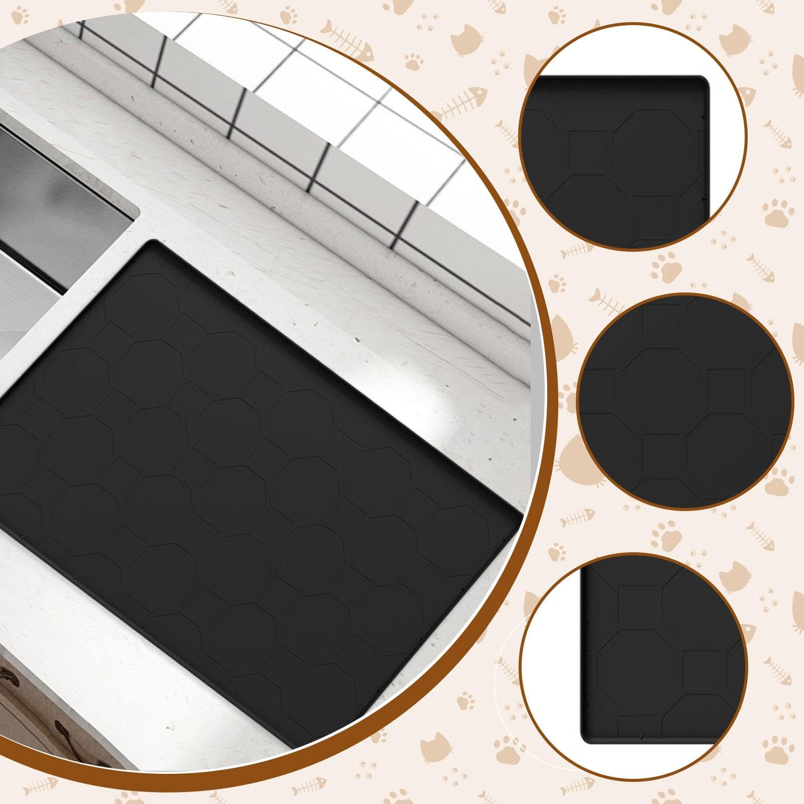 MERIGLARE 【新登場】洗濯機 トレー シリコンドリップトレイ ミニ冷蔵庫フロアマット ミニ冷蔵庫マット 洗濯機用トレー 濡れ防止 防水トレイ 凹み防止 床保護シート シンクマット (ブラック, 71x55cm)