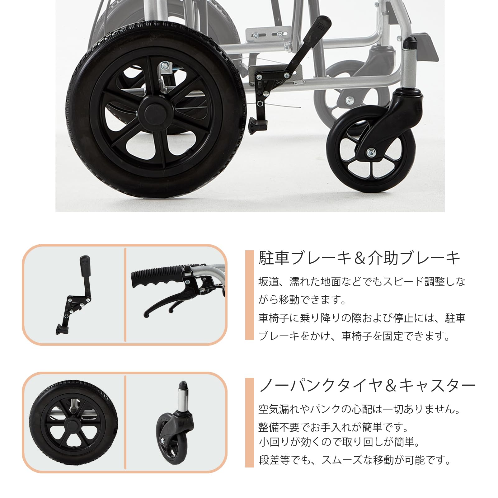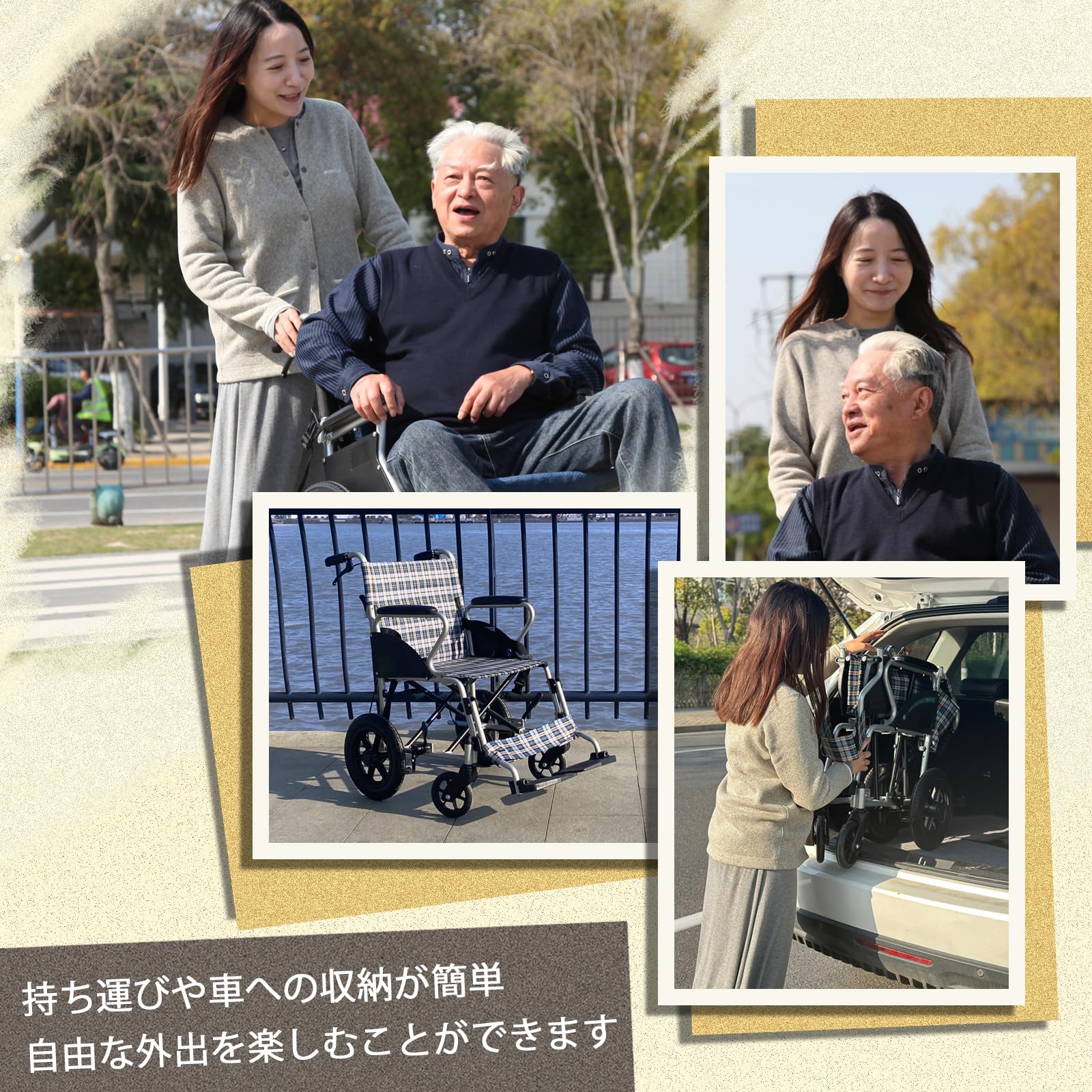 Zurcheel 介助用車椅子 旅行用 軽量 車椅子 介助型 折りたたみ式車椅子 軽い車椅子 アルミ製 コンパクト 介助ブレーキ付き 外出用 室内用