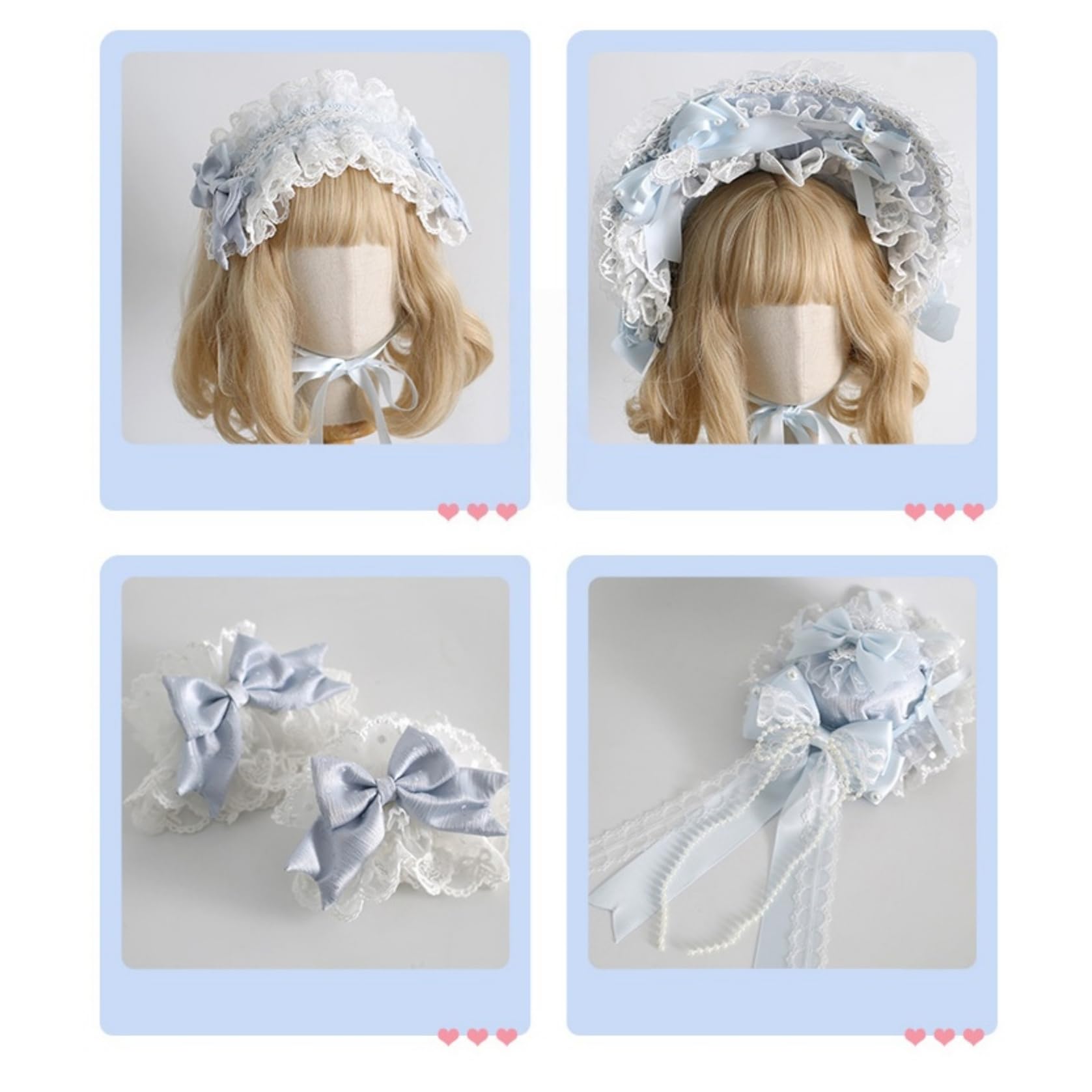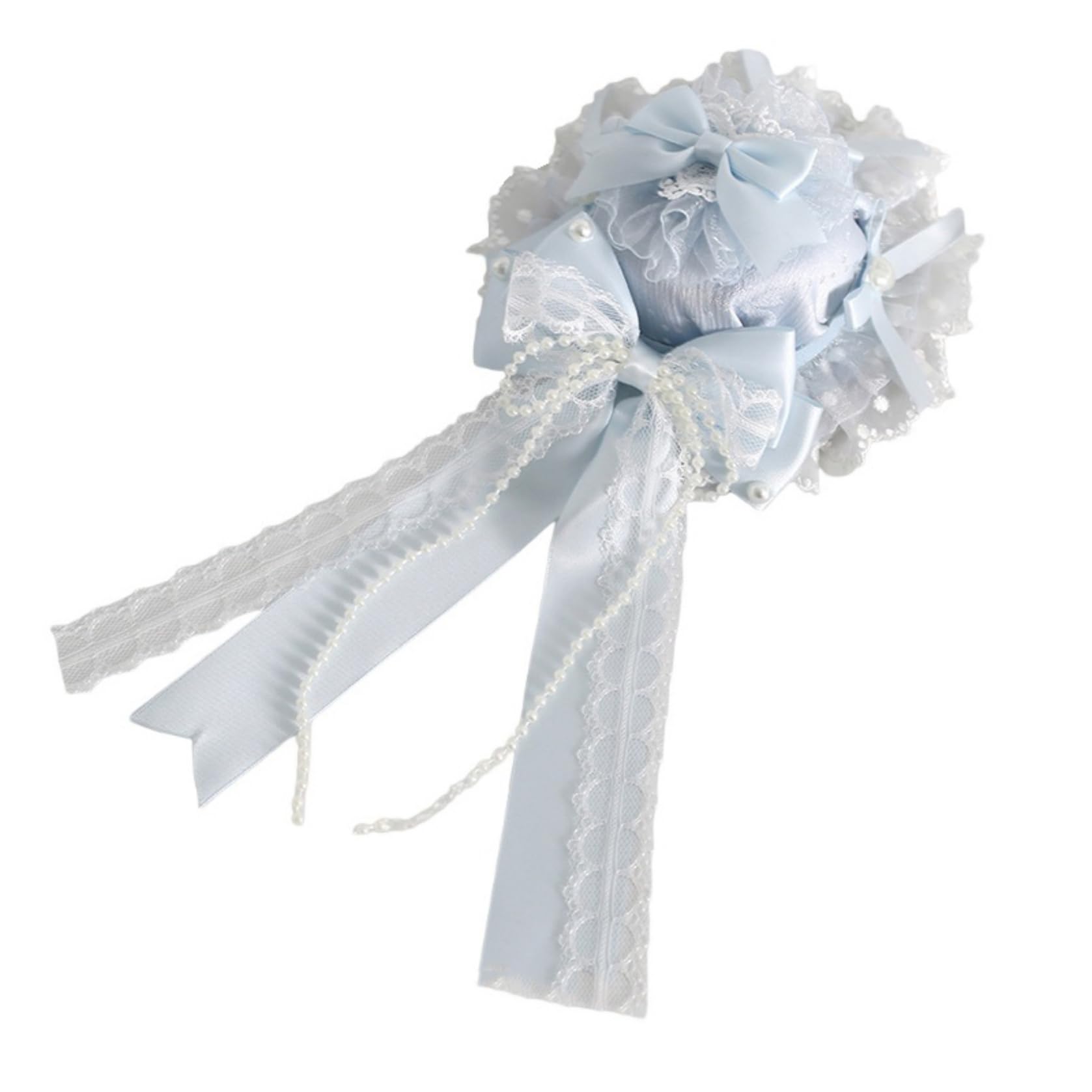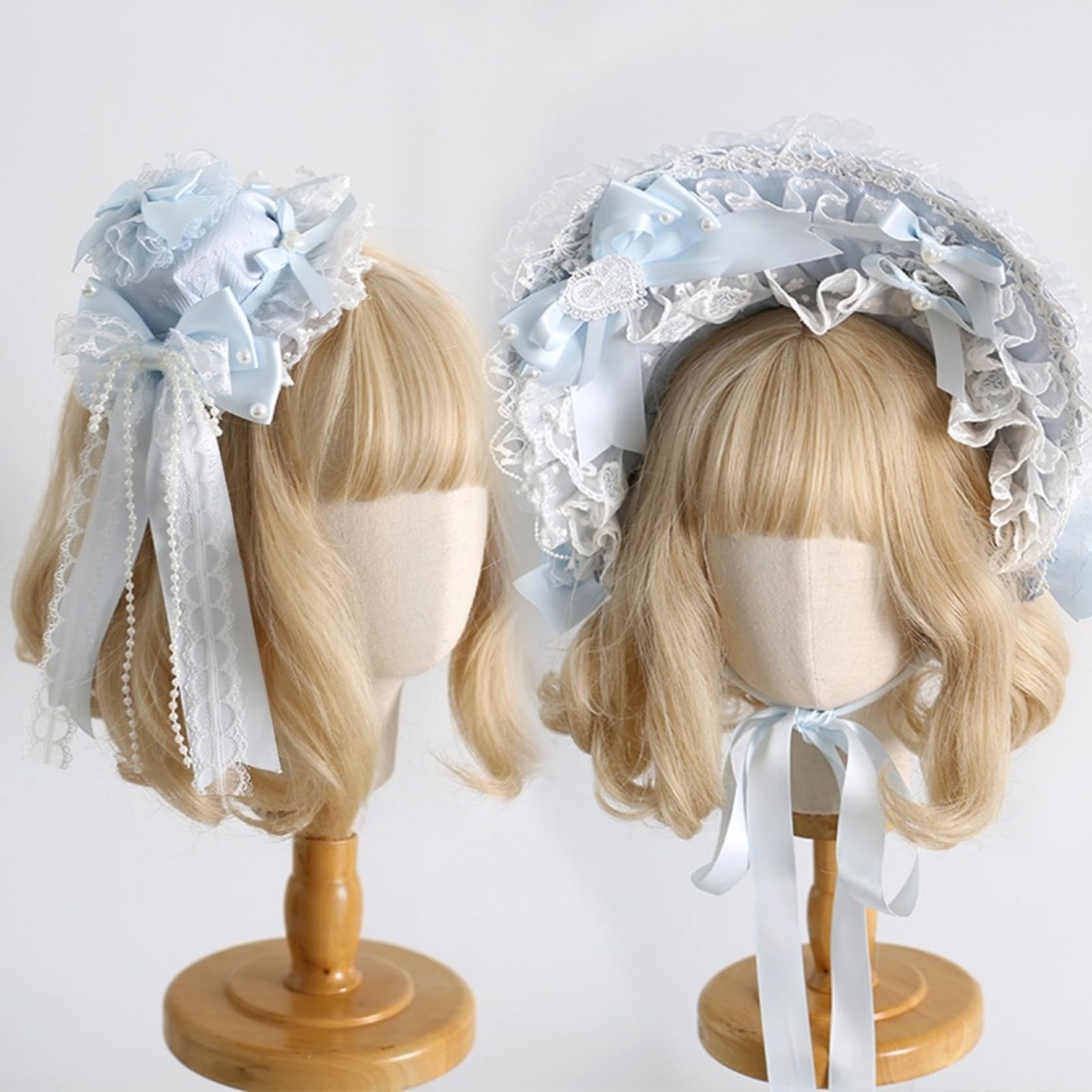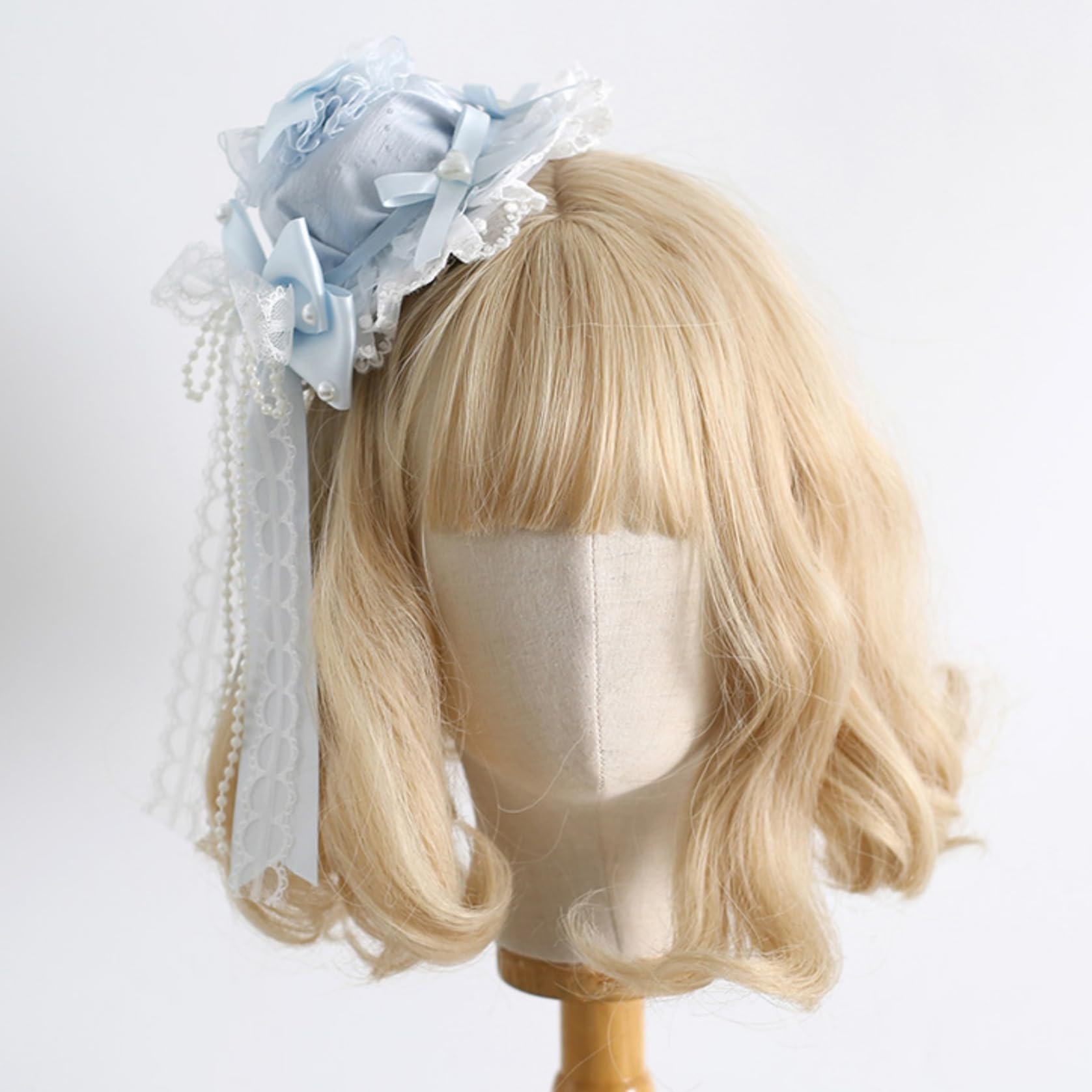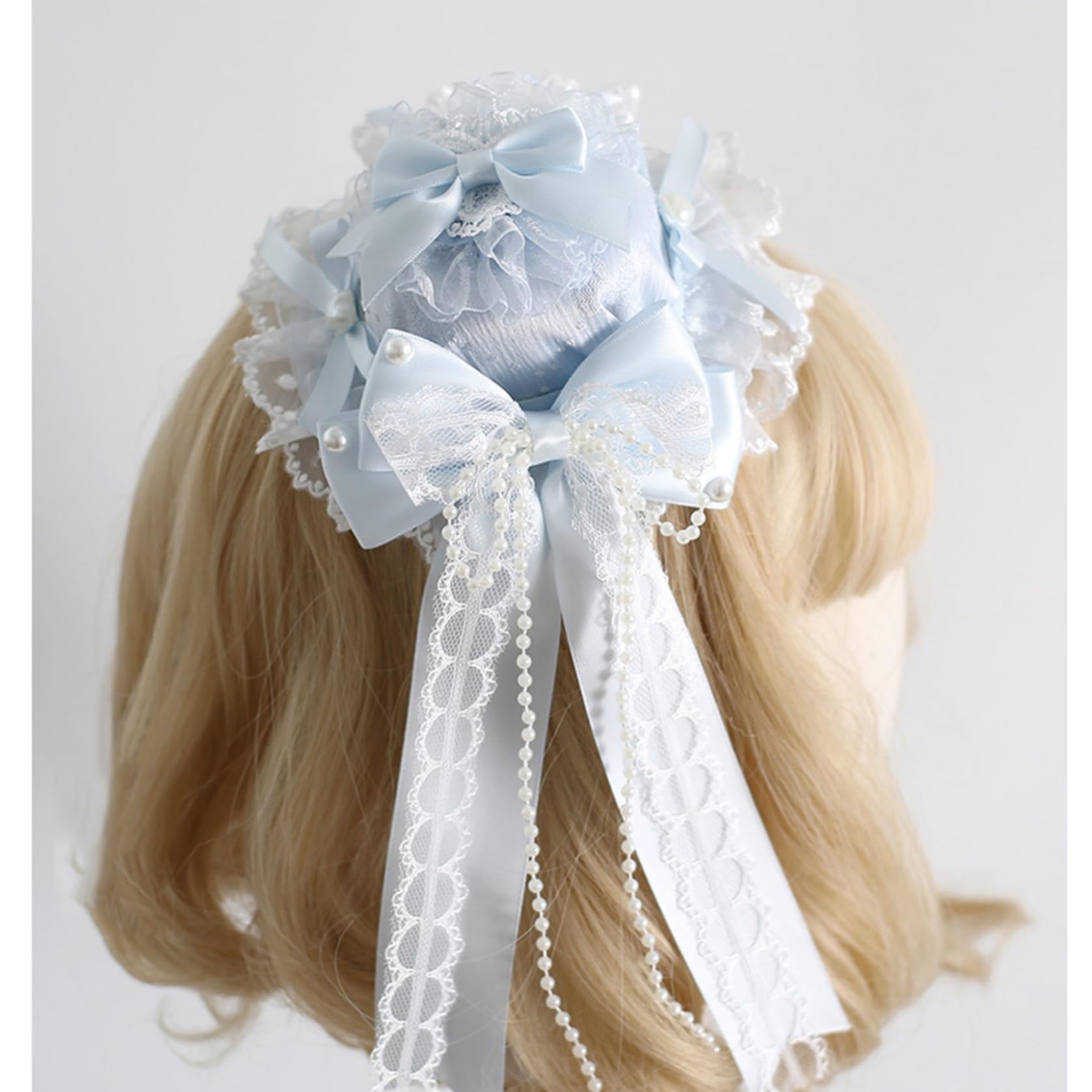 [ボズとガルヤ] ミニハット アクセサリー 小物 ロリータ 飾り 少女 森ガール 原宿系 花嫁 水色 小帽子 蝶結び Lolita 洋装 レース 可愛い ひも付き お姫様 宮廷風 髪飾り 茶話会 イベント