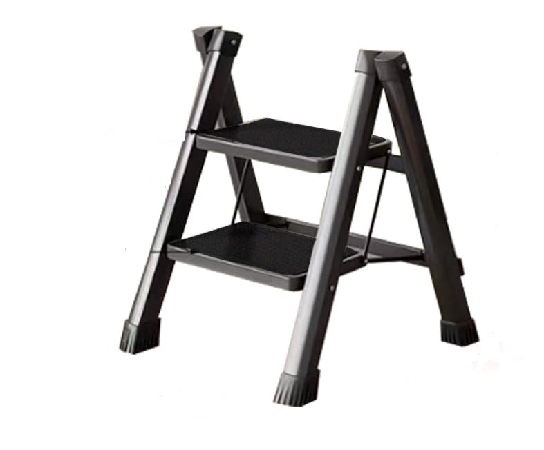 TranquilClimb 幅広ステップ 脚立 2段 超軽量アルミ製 折りたたみ式 耐荷重150kg 滑り止め付き スタイリッシュデザイン 省スペース収納 室内外対応 踏み台