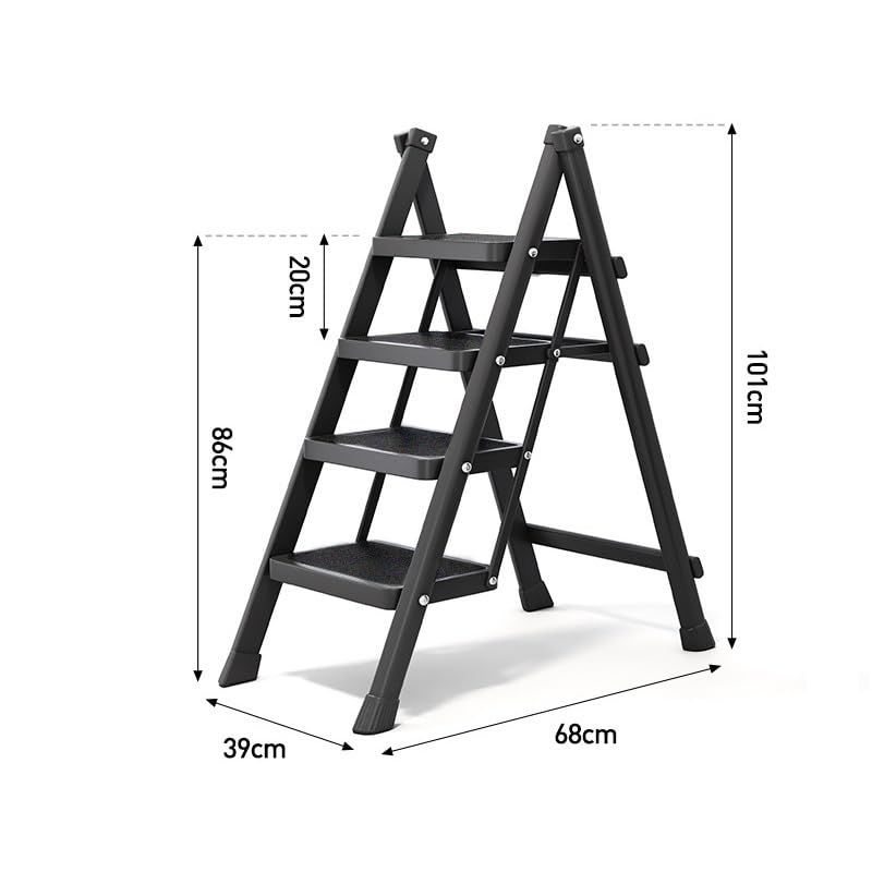 脚立 3段 アルミ製、折りたたみ式、スタイリッシュで軽量、収納スペースが少ない ステップスツール 最大150キログラムの耐荷重 滑り止め付き 広いアルミ製ステップ 屋内外で使用可能(ピアノブラック、3段階)
