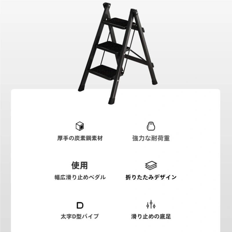 Ngardk 脚立 3段 軽量 室内 - 脚立 おしゃれ 折畳み ステップ 折りたたみ コンパクト 梯子 (3段, ブラック)