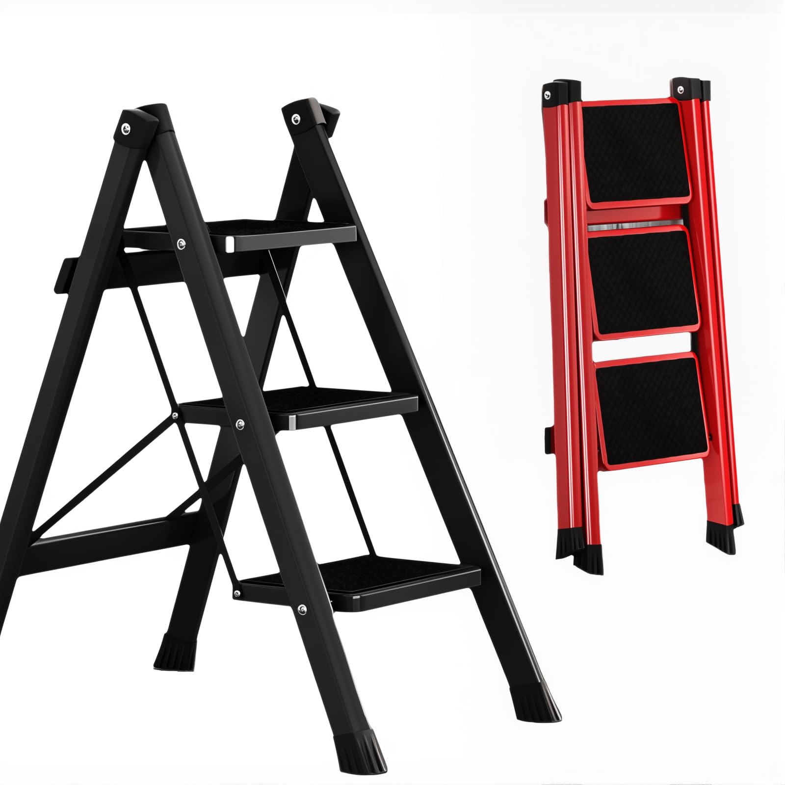Double Elite 脚立 3段 折りたたみ 踏み台 鉄素材 軽量 安全 滑り止め付き おしゃれ ステップスツール はしご 耐荷重150KG 省スペース 多機能 室内 洗車台 屋外