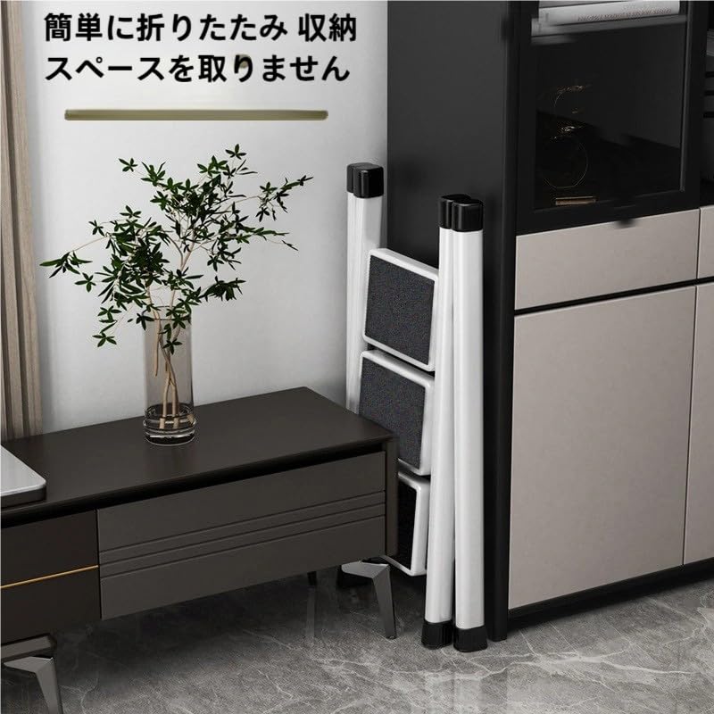 Ngardk 脚立 3段 軽量 室内 - 脚立 折り畳み おしゃれ 折畳み ステップ 折りたたみ コンパクト 梯子 (3段, ホワイト)
