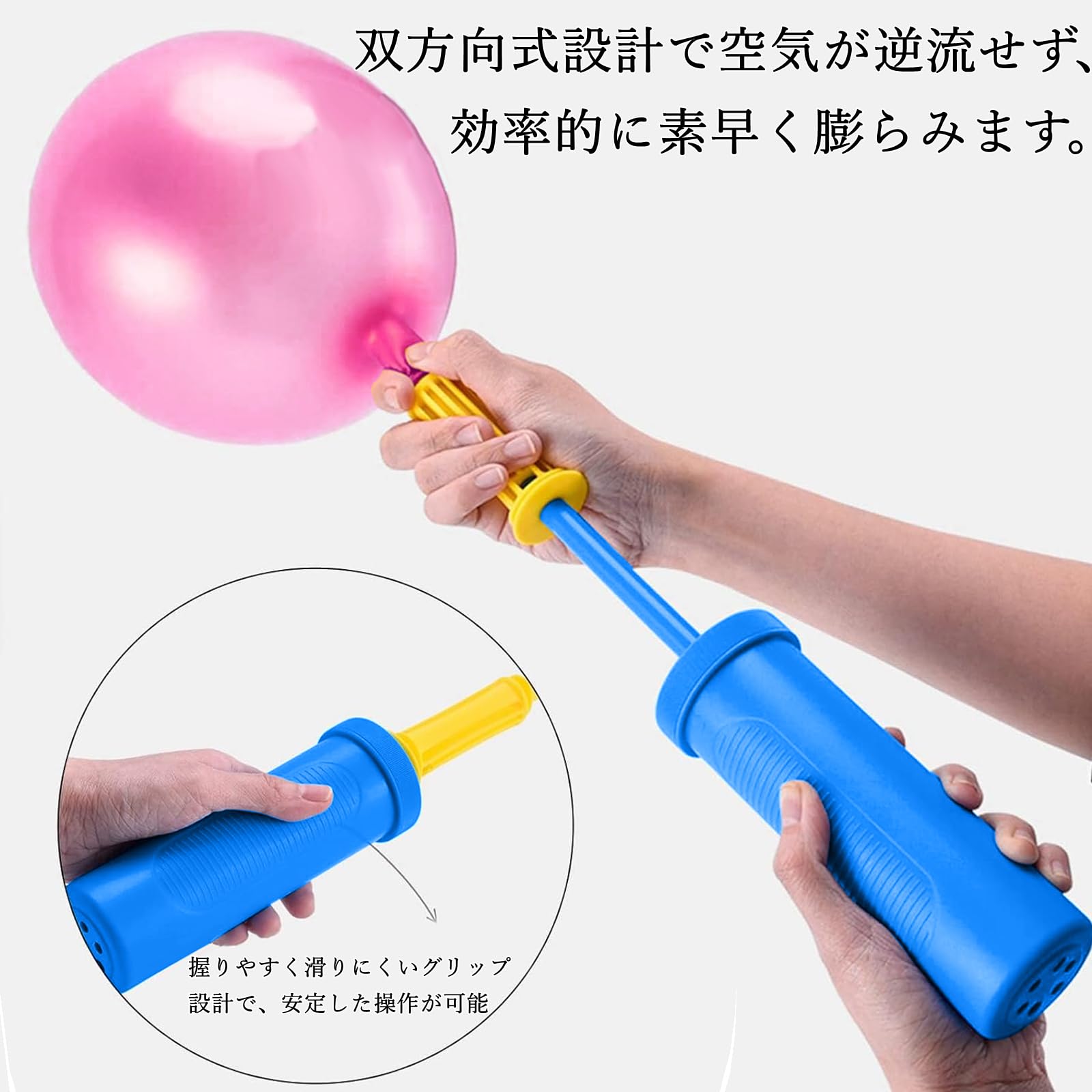 ハンドポンプ 空気入れ 2倍速ポンプ バルーン ポータブルポンプ・風船、浮き輪、ヨガボールに使用できます (青,ピンク2个入りセット)