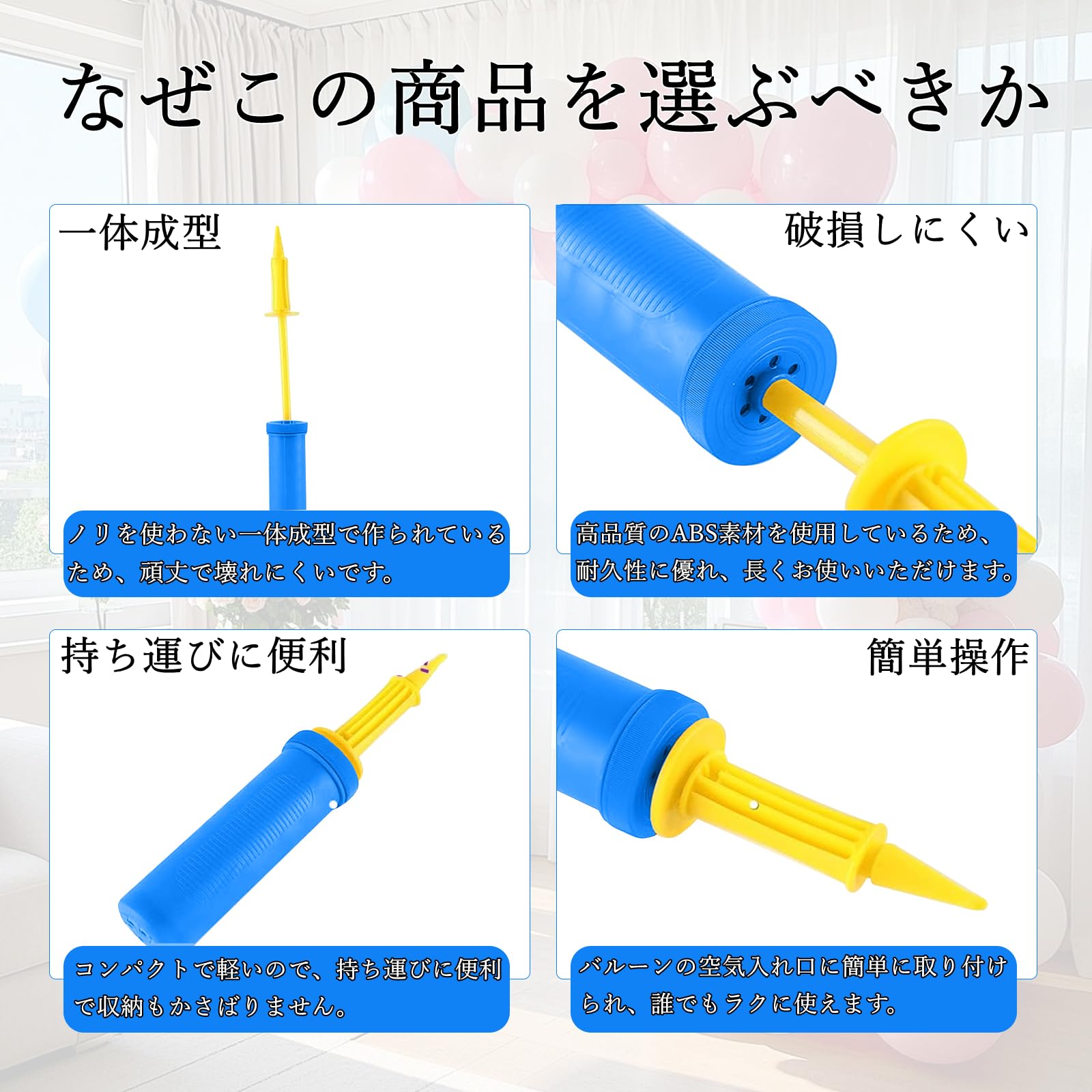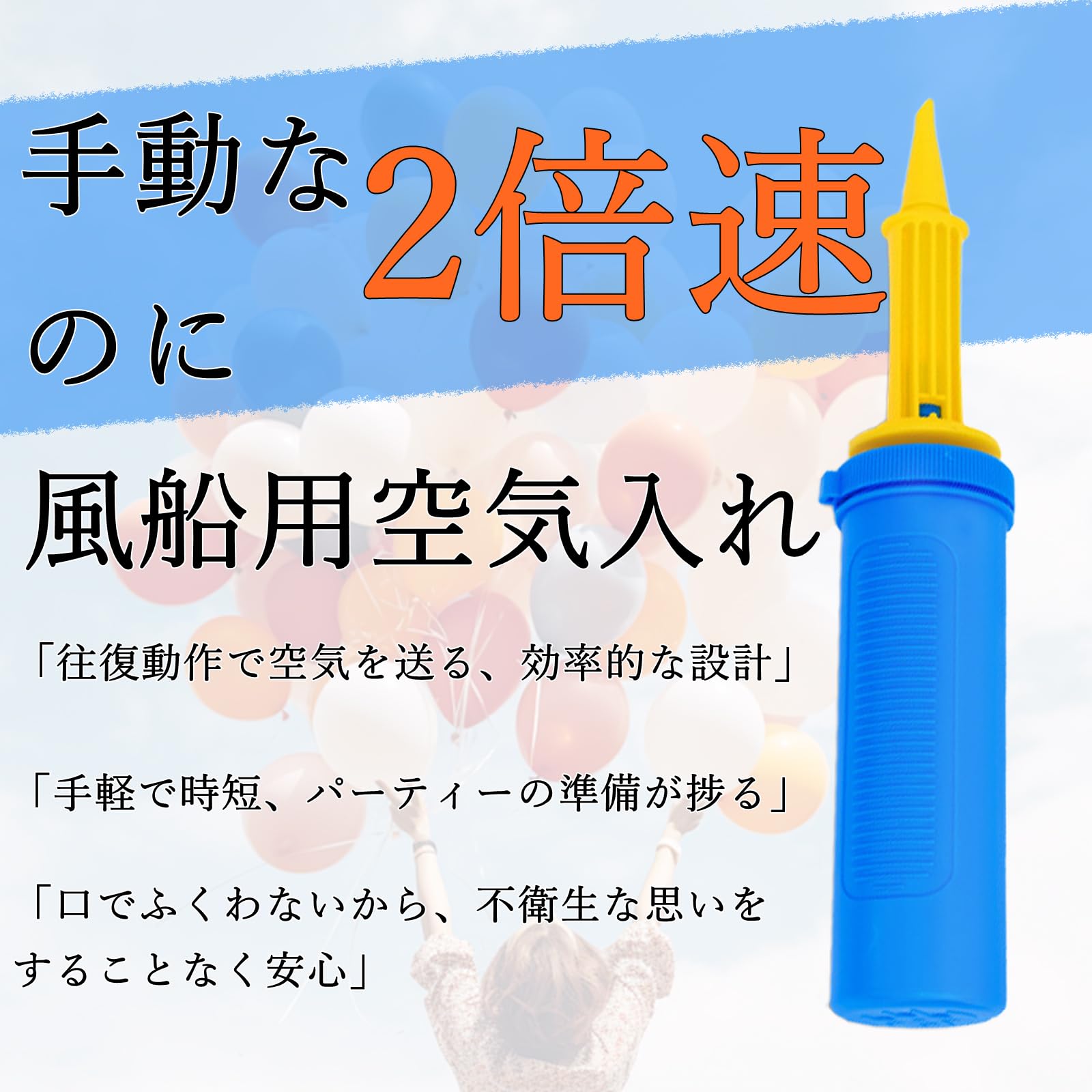 ハンドポンプ 風船用ハンドポンプ 2倍速ポンプ 風船用空気入れ ポータブルポンプ・風船 空気入れ ポータブルポンプ 手動 ライトブルー