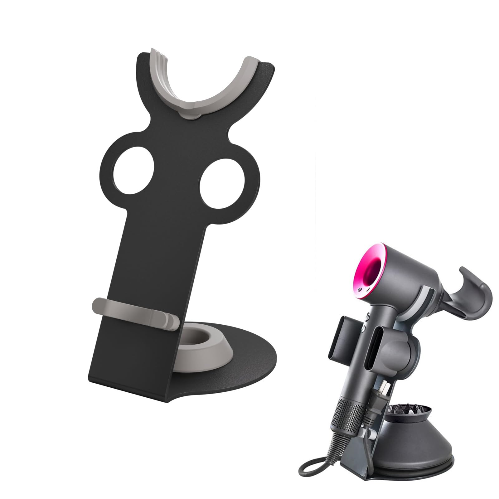 YUET ドライヤースタンド、ドライヤースタンド付属品壁掛け式、ストレートアイロンスタンド、バスルームヘアケアツールマネージャ、多機能空間ストレージスタンド(黒)