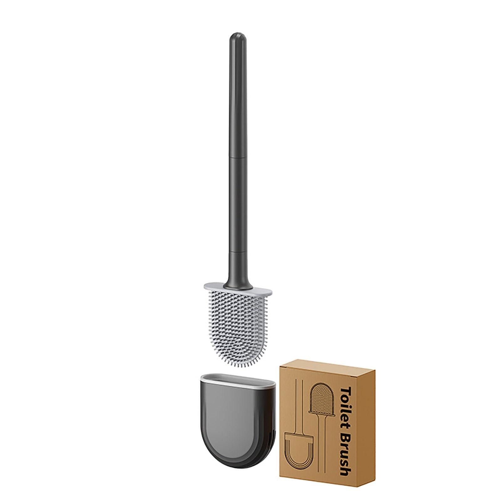 Sitengle トイレブラシ ケース付き スタンド シリコン おしゃれ トイレ掃除用品 隙間掃除 柔らか い 速乾 掃除ブラシ 抗菌TPR材質 (ブラック)