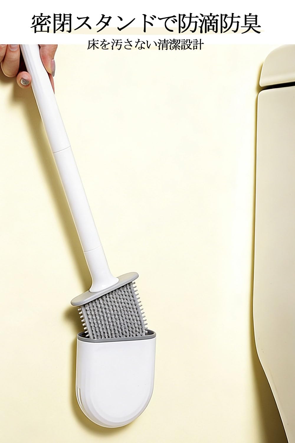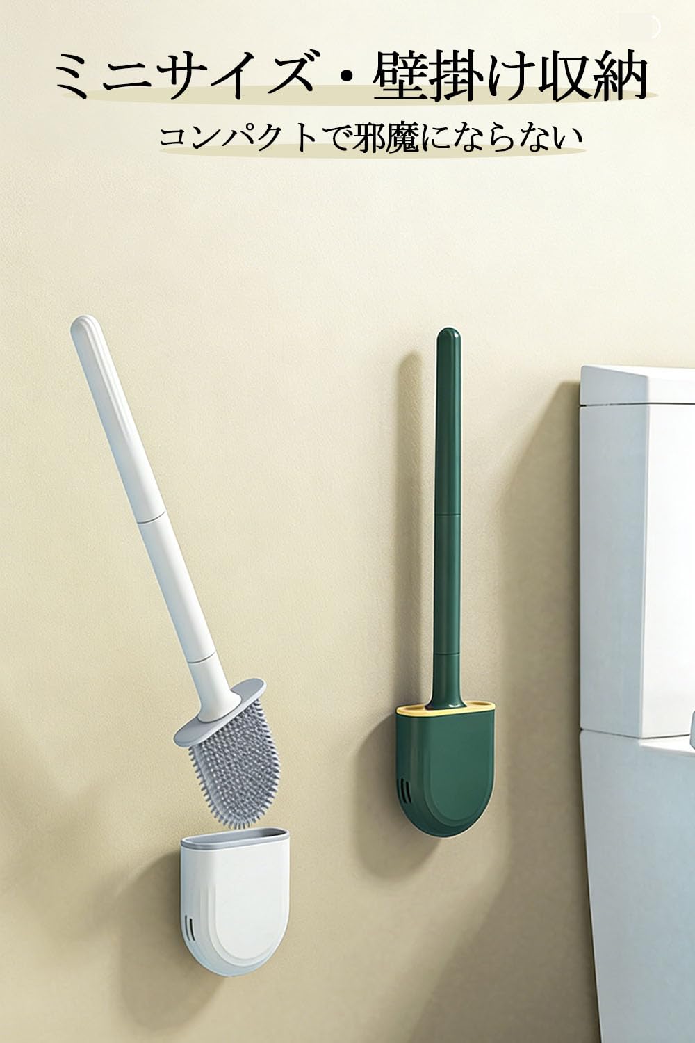[NIJITUKI] トイレブラシ ケース付き トイレ掃除 ミニトイレ用ブラシ おしゃれ トイレブラシケース 便器掃除 傷つけない 台座 壁掛け&置き型 両用【穴あけ不要・賃貸OK】 衛生的 お手入れ簡単 コンパクト 省スペース TPR素材
