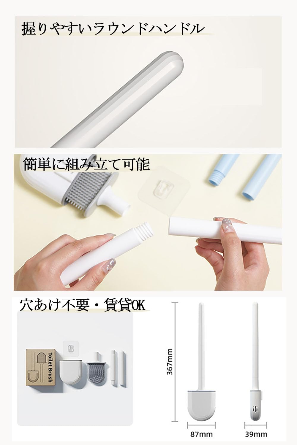 Wallfire 3in1 トイレブラシ トイレ掃除 ホルダー付き タイプ 抗菌TPRブラシヘッド 水はね防止 トイレを傷つけない シリコン製 立て置き 壁掛け おしゃれ ホワイト