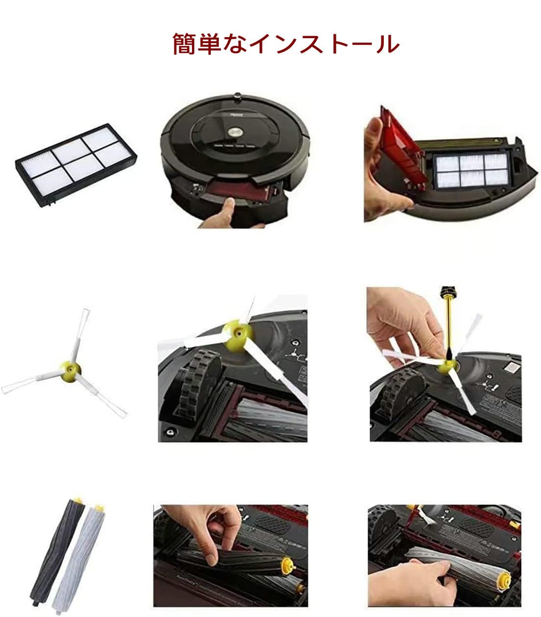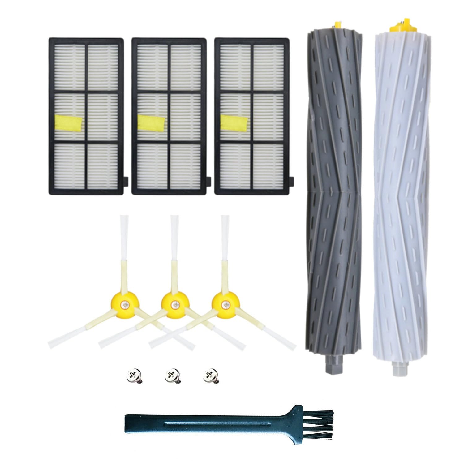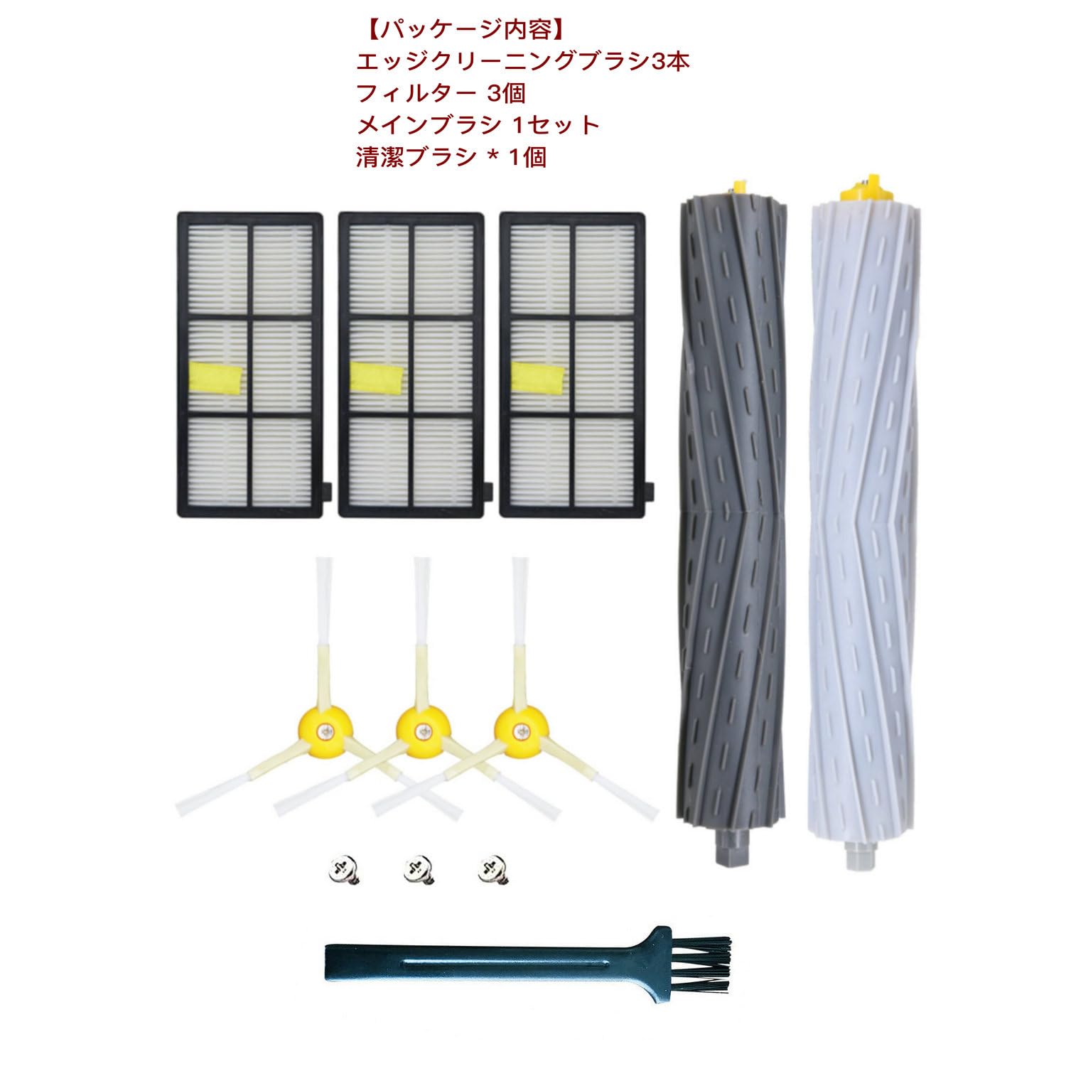 KIOMOKI 消耗品セット for ルンバパーツ 800 900シリーズと互換性のある消耗品セット ロボット掃除機交換用 パーツキット 850 860 861 866 870 880 890 900 Series 960 980 981 985 対応互換エッジクリーニングブラシ3本、フィルター 3個、メインブラシ 1セット