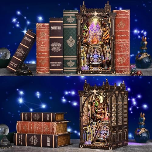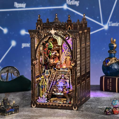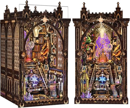 CRESYMME ミニチュア ドールハウス ブックヌック キット LEDライトとオルゴール付き DIY 手作り 立体 木製 小屋 パズル 大人向け(魔法研究会 )