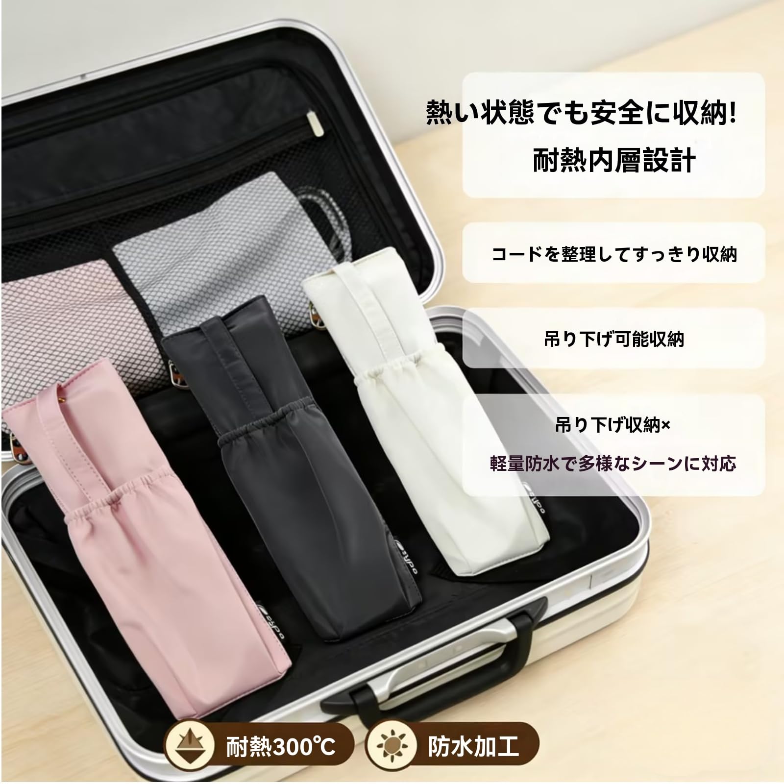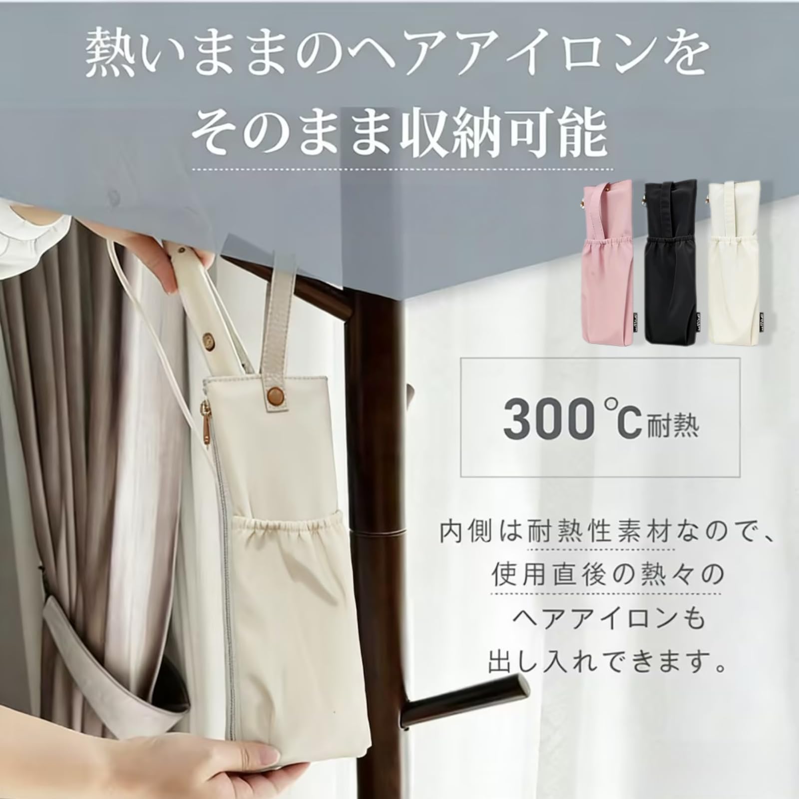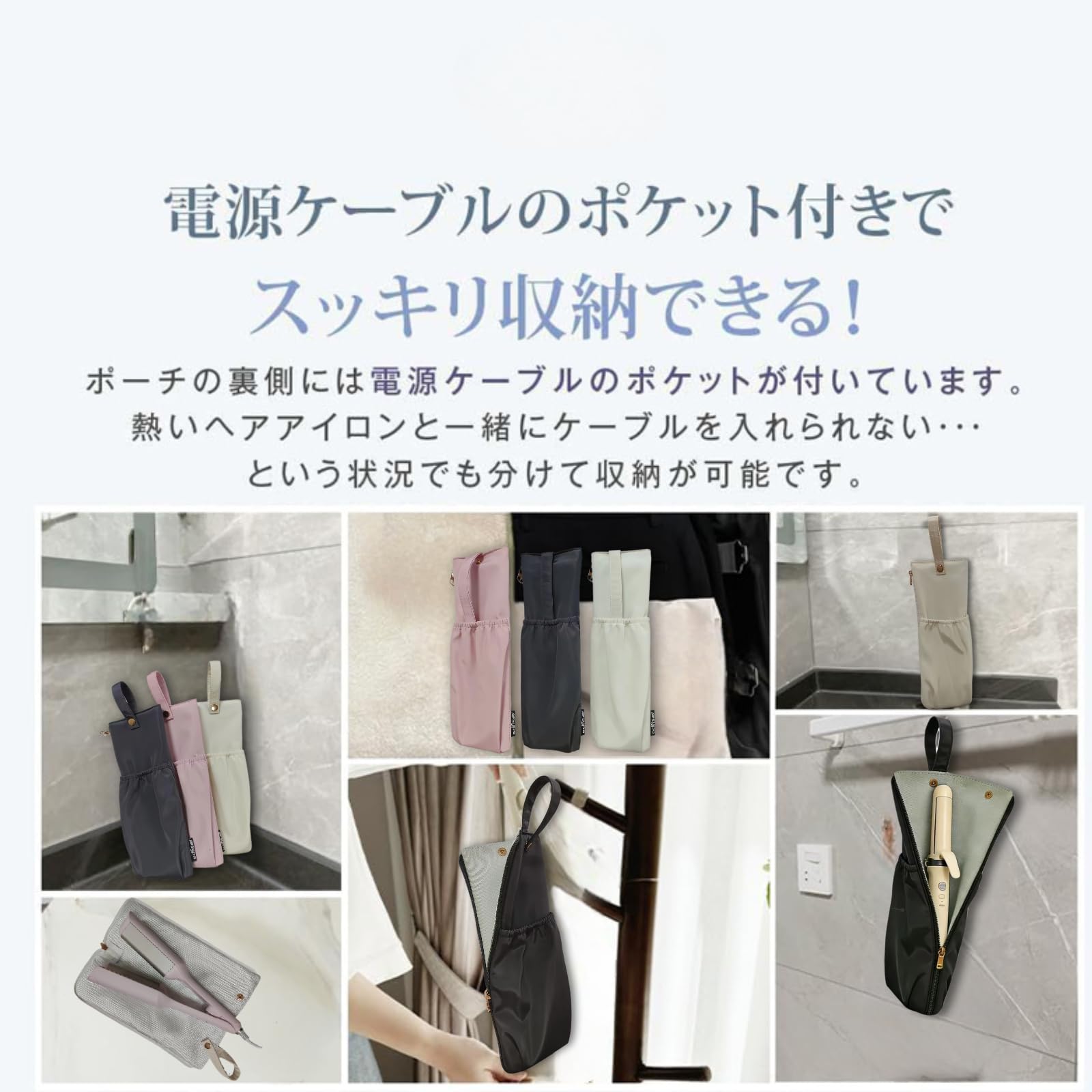 ヘアアイロンケース Krammy 耐熱301℃ 熱いまま収納 旅行ヘアアイロン収納 ヘアアイロン持ち運び アイロンケース 吊り下げポーチ おしゃれヘアアイロンポーチ(クリーム色)