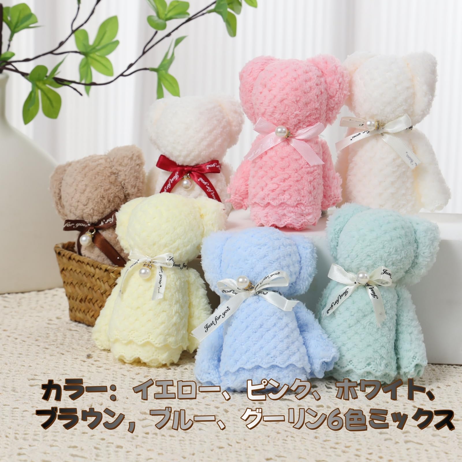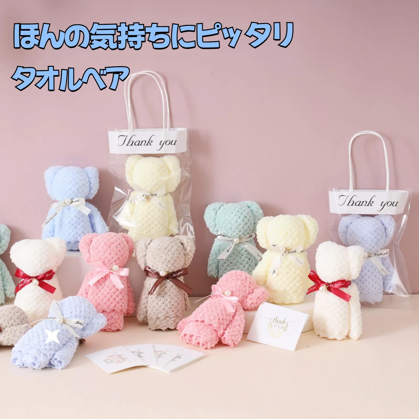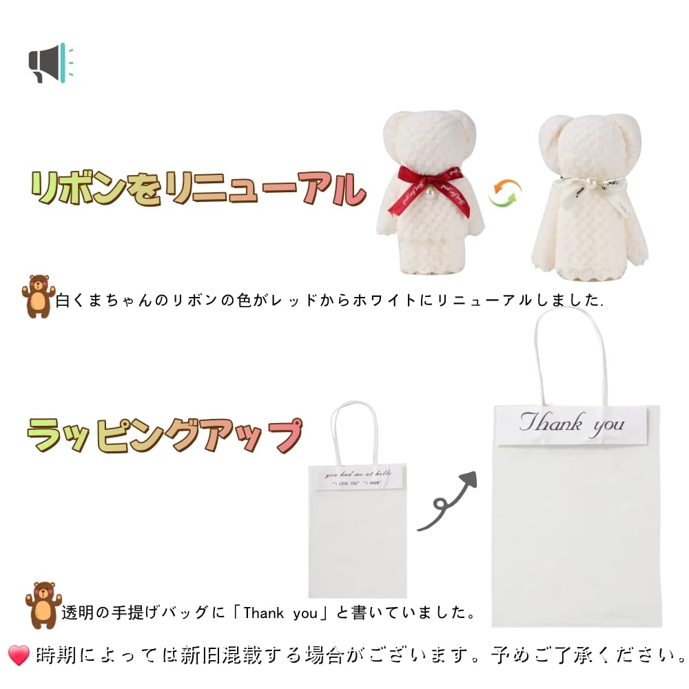 Alutaio タオル15個セット ハンカチ プチギフト ハンドタオル プレゼントプチギフト 個包装 かわいい パールくまさん ベアー ギフト 景品 退職 退院 引っ越しの挨拶 結婚式 お返し粗品 メッセージカード ラッピングバック付き (パールくまさん+メッセージカード+opp透明手提げ袋 15セット)