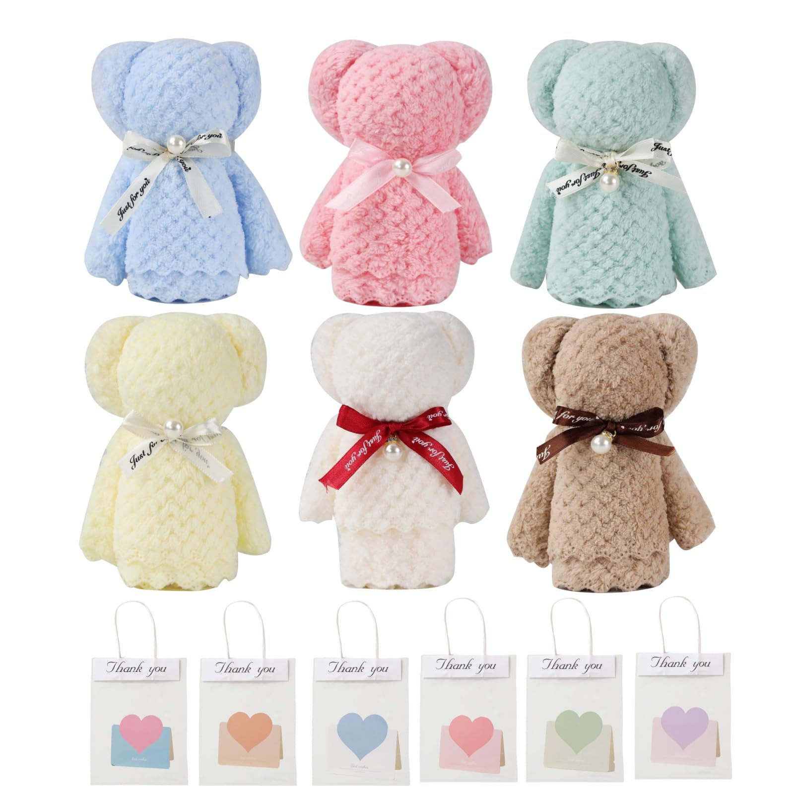 Alutaio タオル6個セット ハンカチ プチギフト ハンドタオル プレゼント個包装 かわいい パールくまさん ベアー ギフト 景品 退職 退院 引っ越しの挨拶 結婚式 お返し粗品 メッセージカード ラッピングバック付き(パールくまさん+メッセージカード+opp透明手提げ袋 6セット)