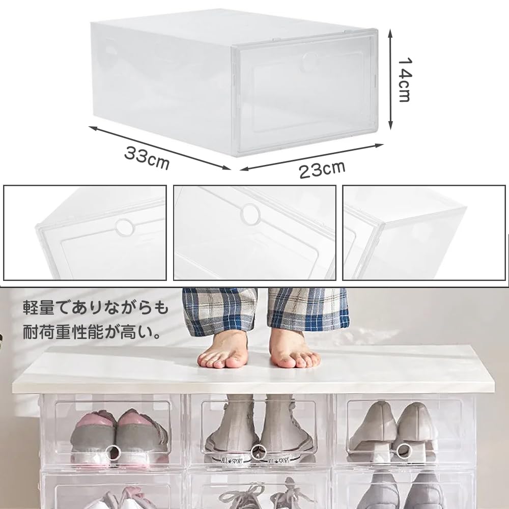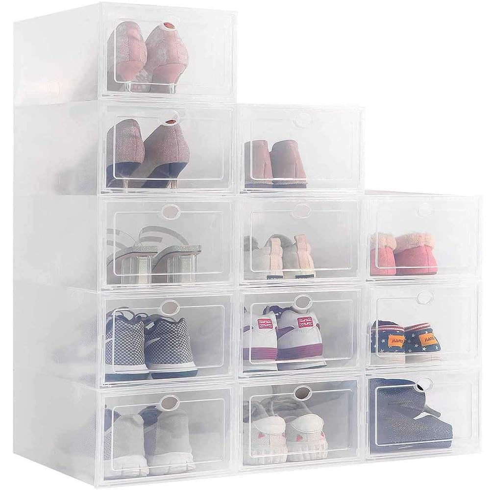 YBGGJO シューズボックス プラスチック透明 12個セット 33x23x14cm スニーカーケース 防汚 防塵 防水 通気 多層 靴収納ボックス 大容量 開閉扉 組み立て式 革靴/スニーカー/小物/バッグ/玄関収納用 男女兼用サイズ (透明 12個セット)