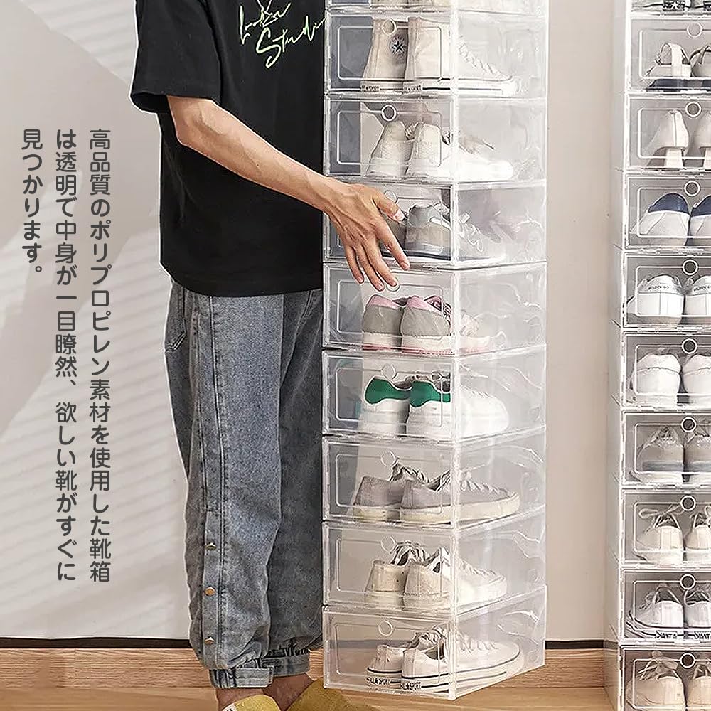 シューズボックス スニーカー収納 収納ボックス 下駄箱 シューズキャビネット 収納ケース スニーカーボックス プラスチック 靴収納 靴棚 ブラック 大容量 組立て式 ふた付き 横開き 多層 開閉扉 小物 文房具 化粧品収納 クロゼット 玄関 幅36×高22×奥28cm (クリア, 8個)