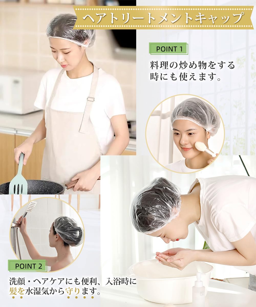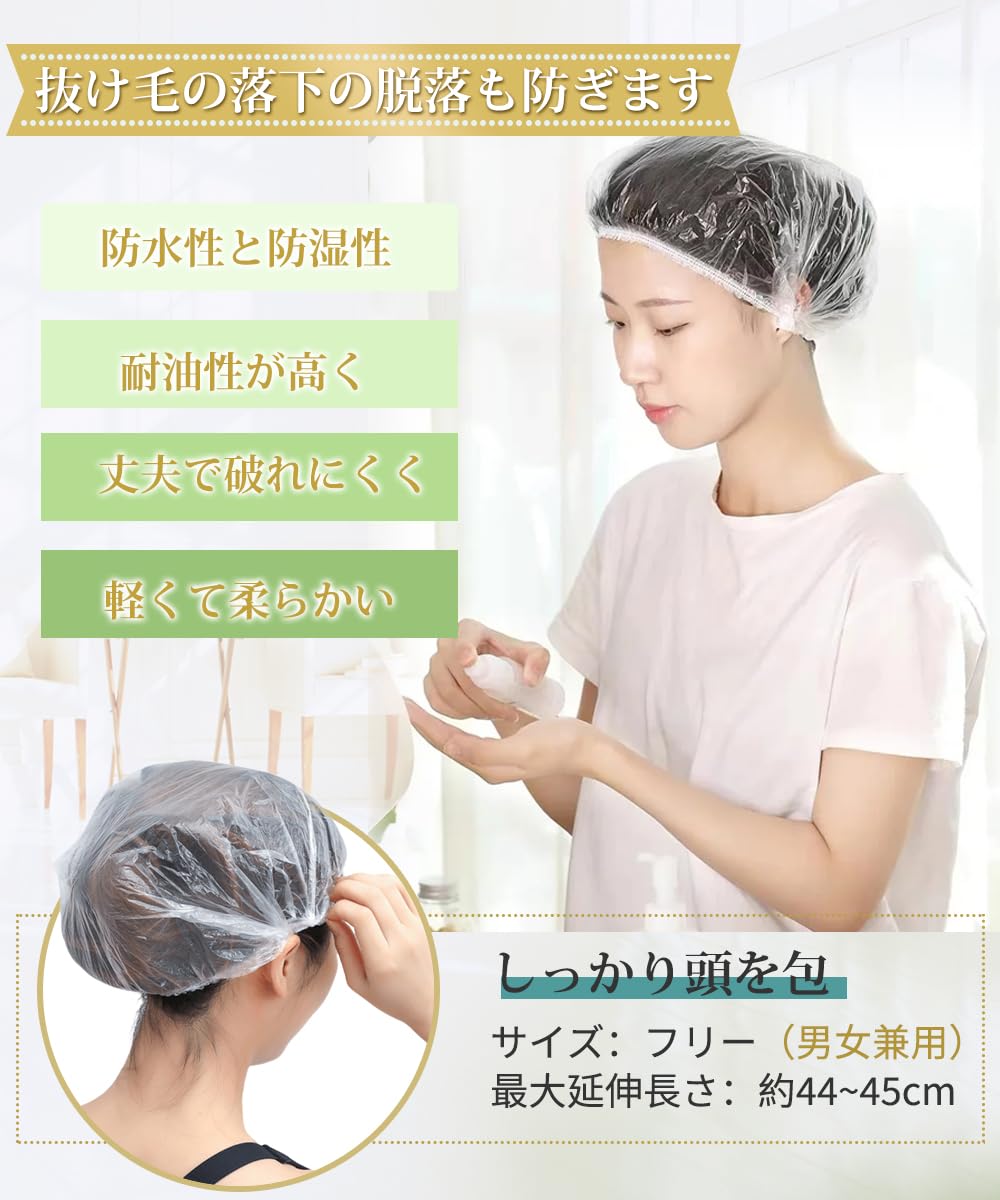 LIKENNY シャワーキャップ 使い捨て 100枚入り 防水 透明 ヘアキャップ ヘアカラー用 髪染め用 お風呂/温泉スパ/ヘアサロン/調理/業務/作業用 フリーサイズ 男女兼用