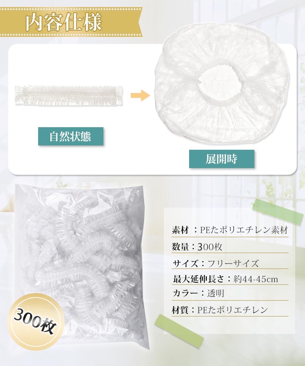 LIKENNY シャワーキャップ 使い捨て 300枚入り 防水 透明 ヘアキャップ ヘアカラー用 髪染め用 お風呂/温泉スパ/ヘアサロン/調理/業務/作業用 フリーサイズ 男女兼用
