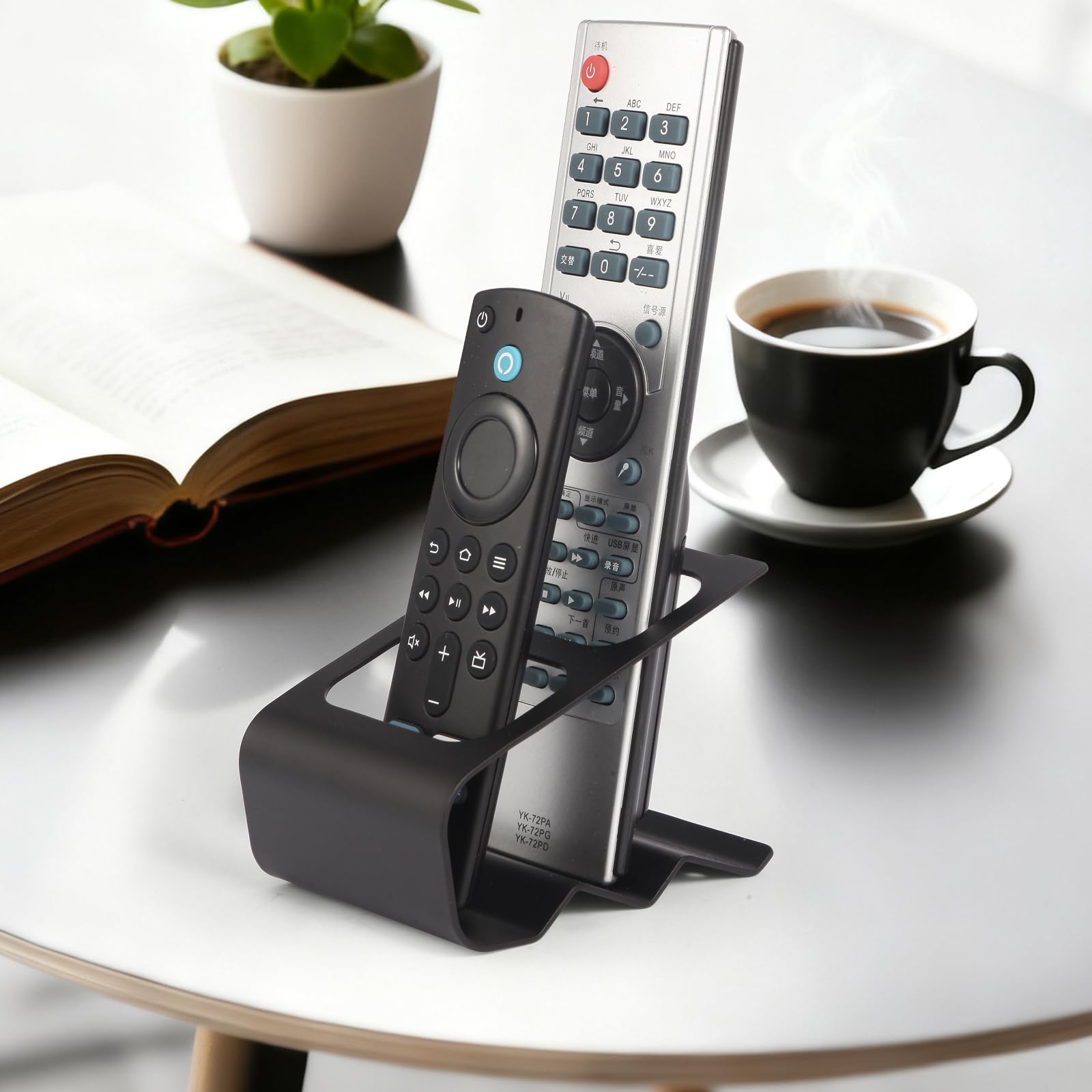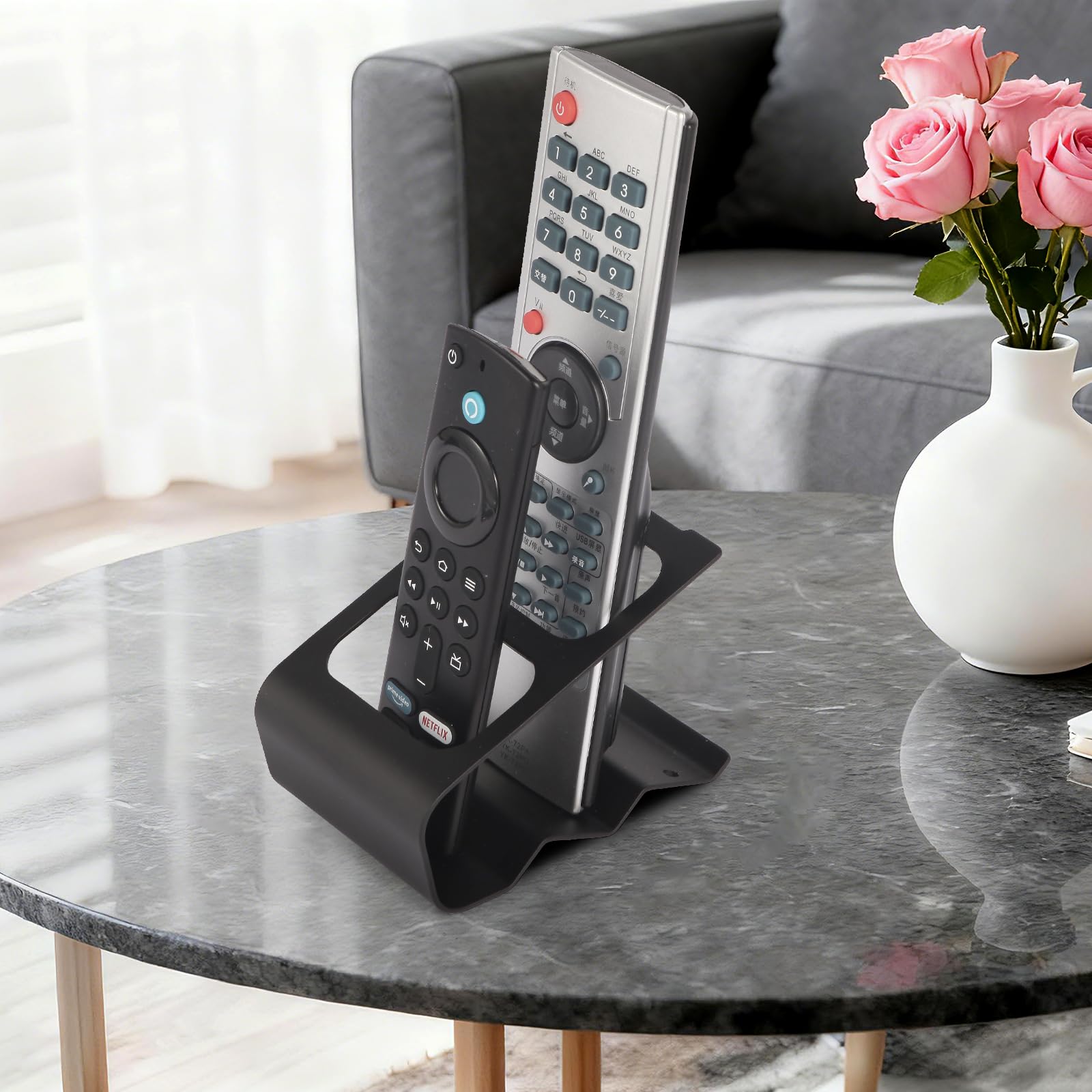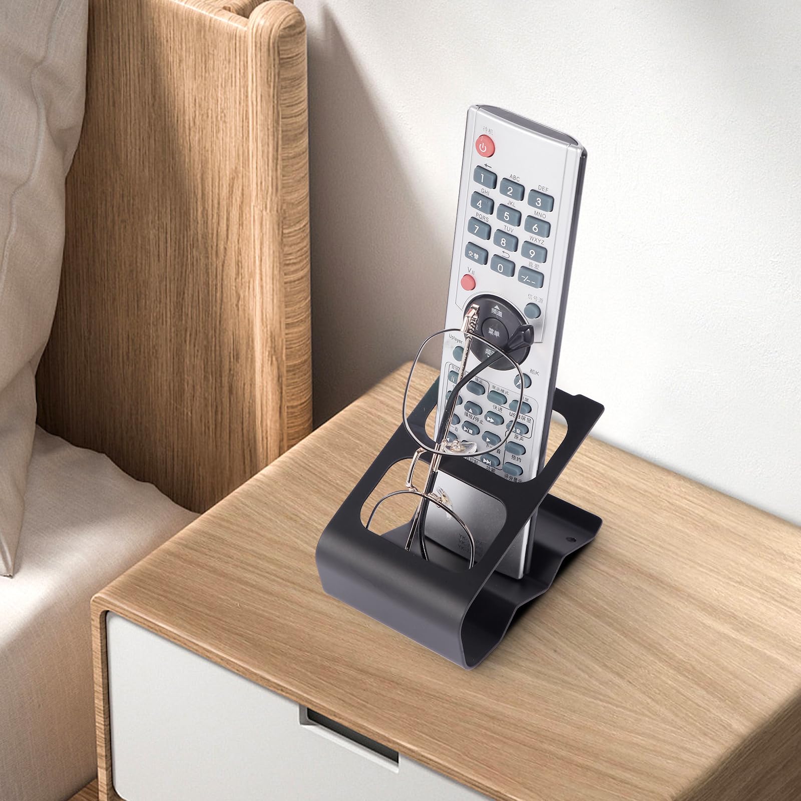 KAIXUANMAN リモコン 収納 卓上 おしゃれ リモコンホルダー 金属 しっかり 頑丈 小物入れ 便利 テーブル 2格仕切り 滑り止めシート付き ブラック
