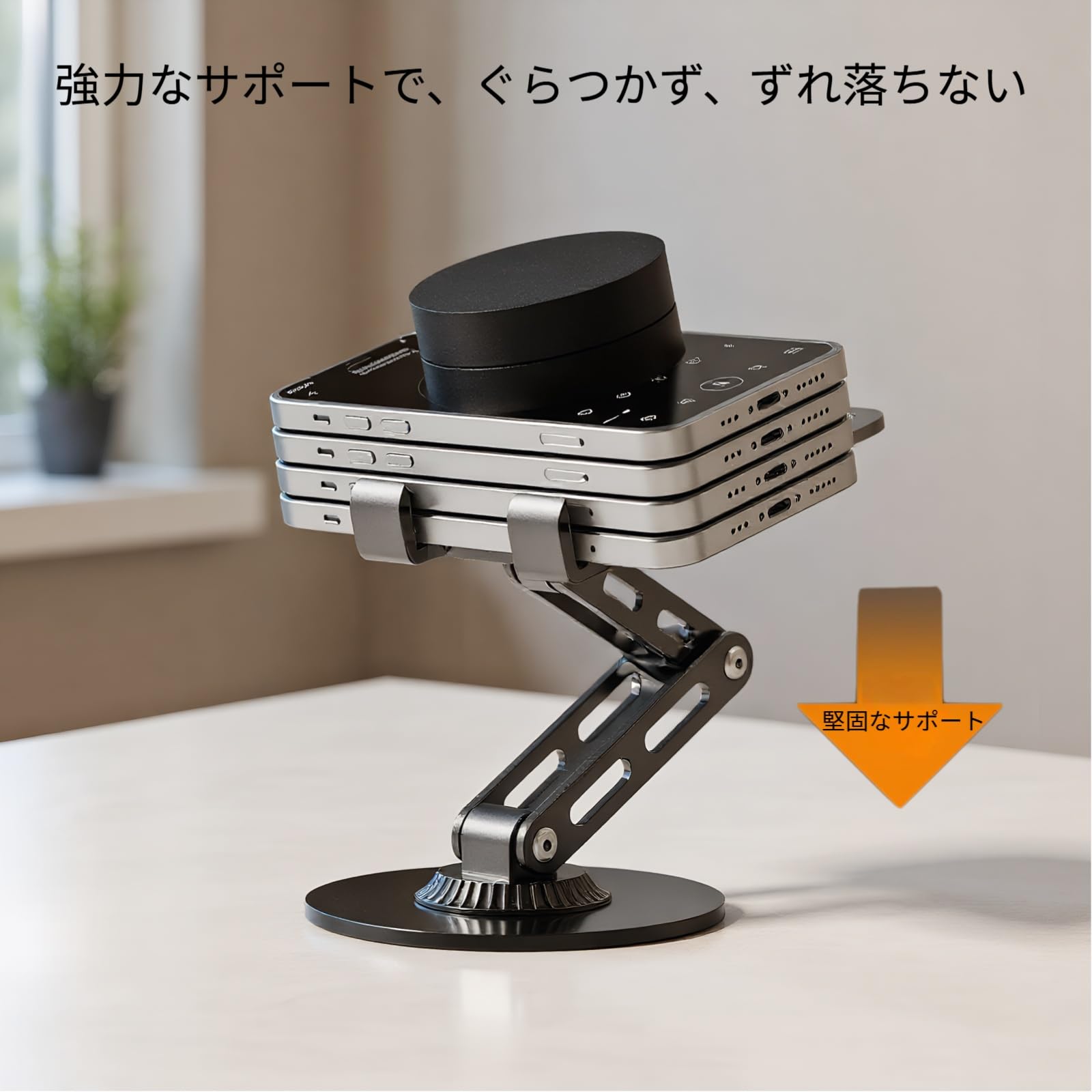 【新型4関節】スマホスタンド 卓上 高さ角度調整 携帯スタンド 滑り止め設計 折り畳み式 スマホ スタンド アルミニウム製 持ち運びに便利 iPhone/Android対応 シルバー