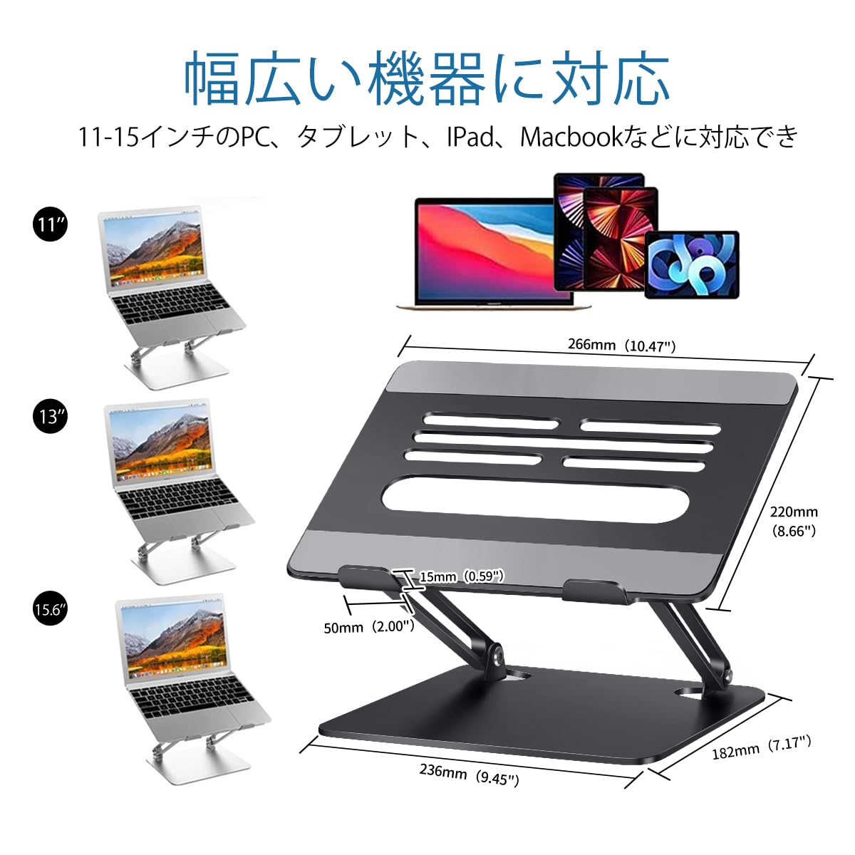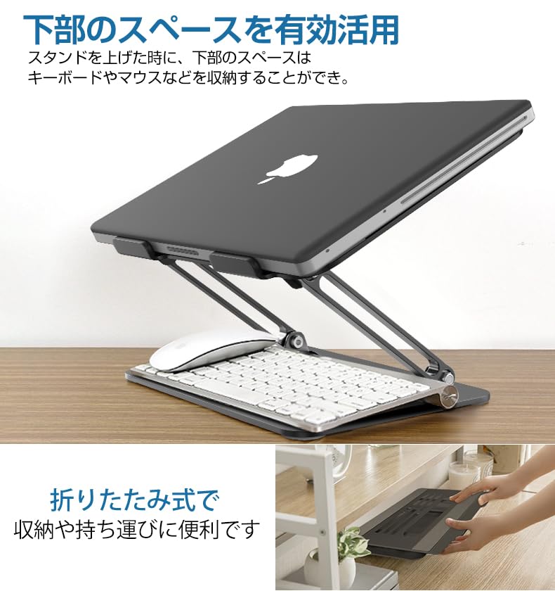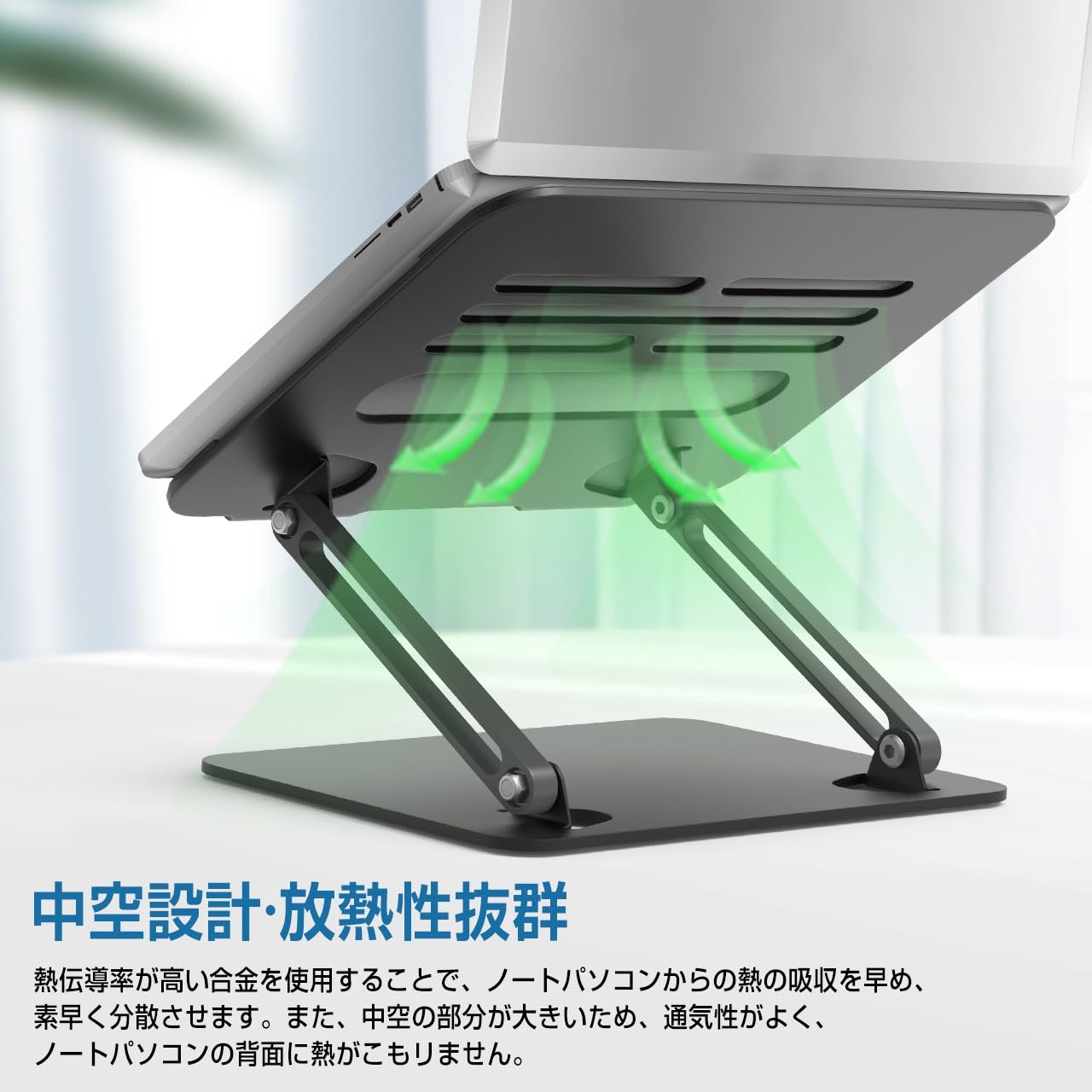 ノートパソコンスタンド 折りたたみ式 ノートPCスタンド【設計】 ノートパソコン用ラップデスク 無段階高さ角度調整 姿勢改善&猫背 滑り止めゴム 放熱対策 合金製 在宅仕事 ZOOM会議 Macbook/iPad/ノートPCなど15.6インチまでに対応 外付けキーボードをお勧めです ブラック