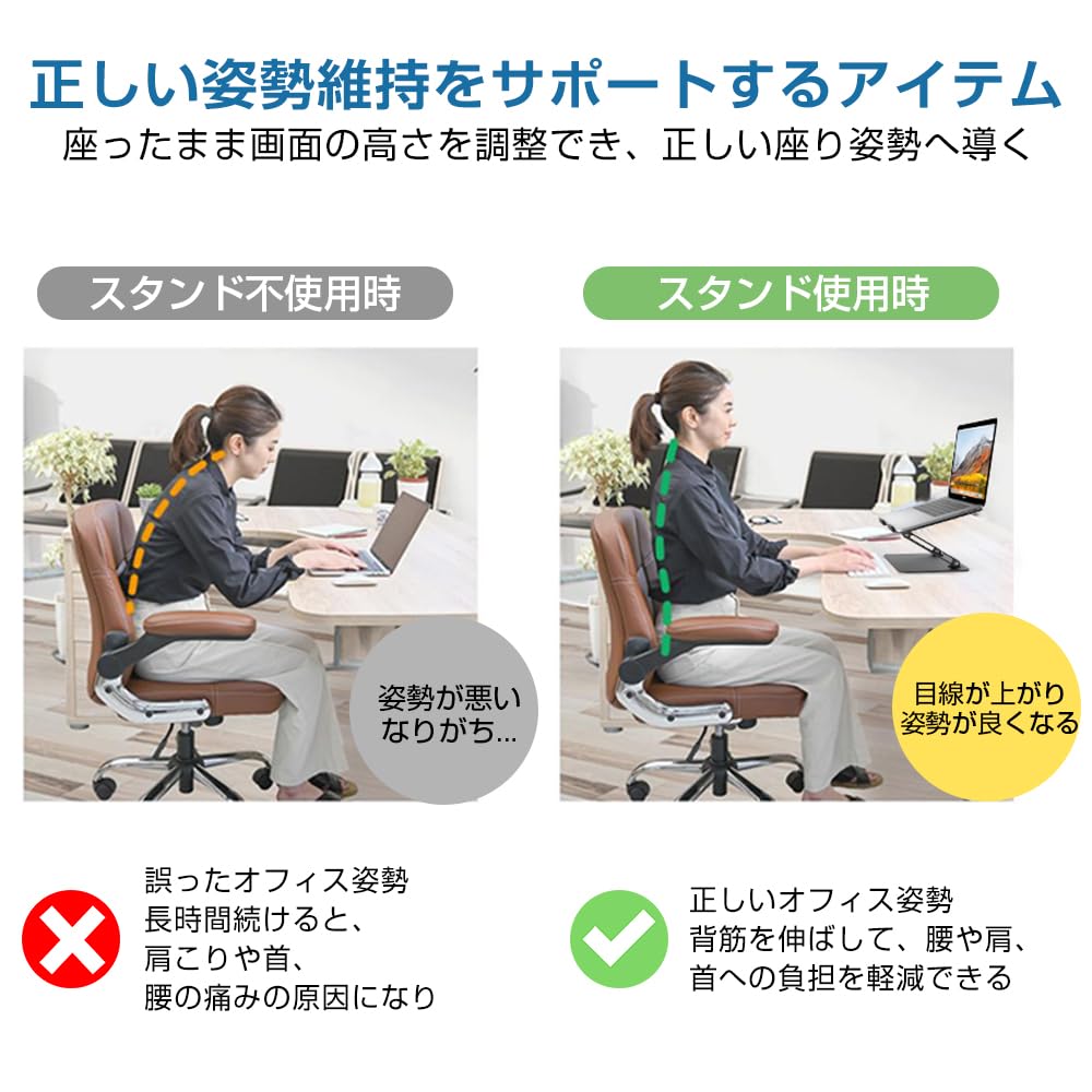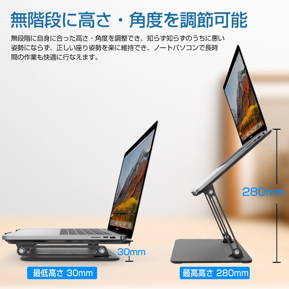 BoYata ノート パソコン スタンド PCスタンド パソコンスタンド 人間工学設計 安定性 無段階高さ調整 姿勢改善 折りたたみ式 滑り止め アルミ合金製 在宅勤務 17インチ以下対応…