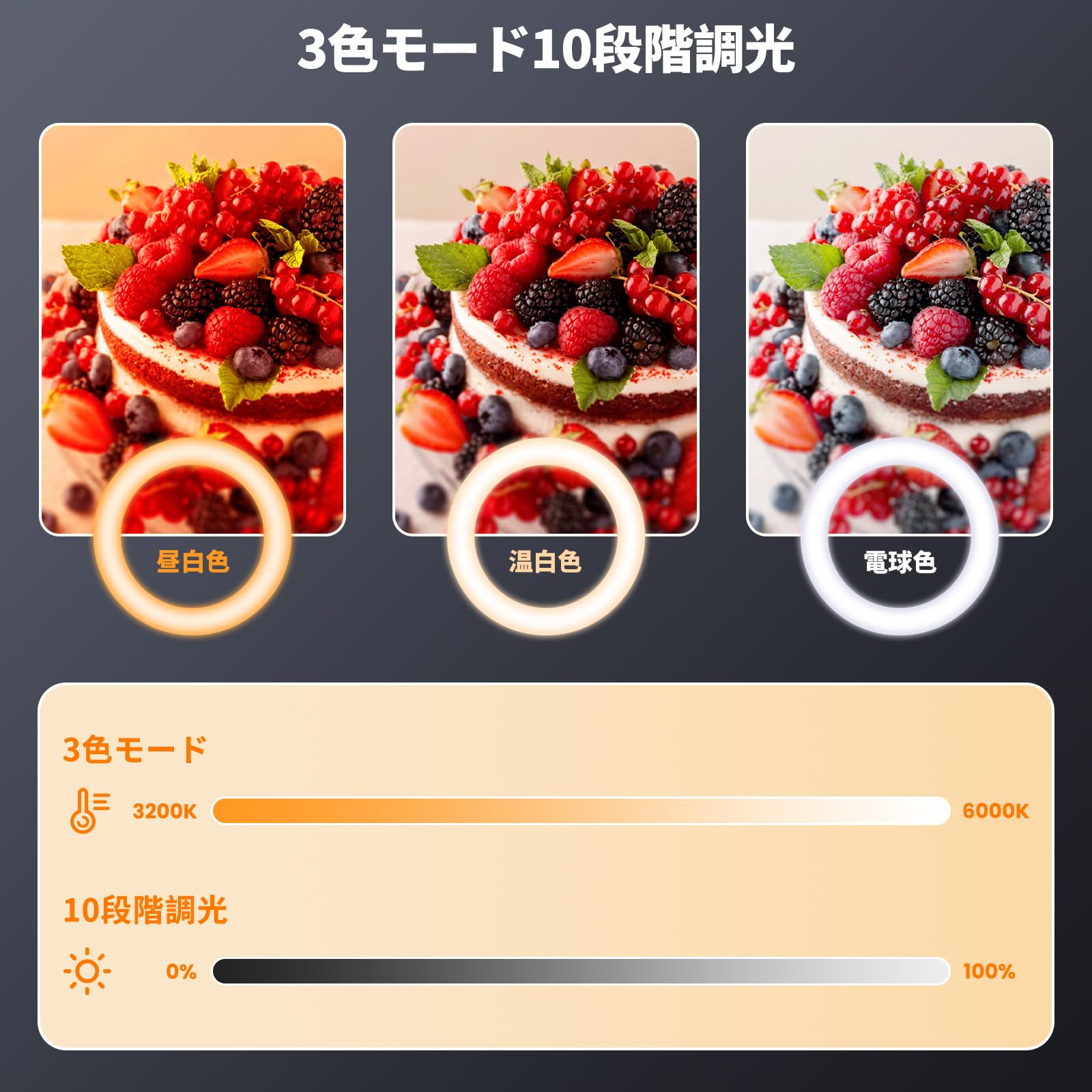 Smiling Shark自撮りライト 【クリップ&直立両用・60個LED灯珠·長時間使用可能】 スマホライト 女優ライト 高演色CRI90+ 美顔照明 3色10段調光 クリップ式 直立可能 左右360° 上下90°調整 2000mAh 充電式 残量表示 105g小型軽量 自撮り・動画撮影・オンライン会議に最適 Zoom/YouTube/TikTok補光ライト 撮影用ライト 日本語取扱説明書 白