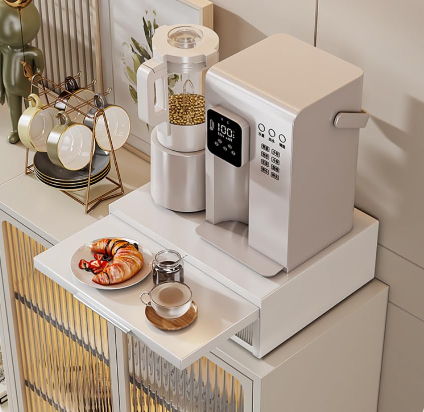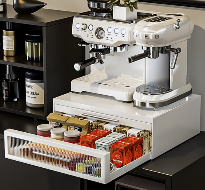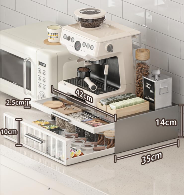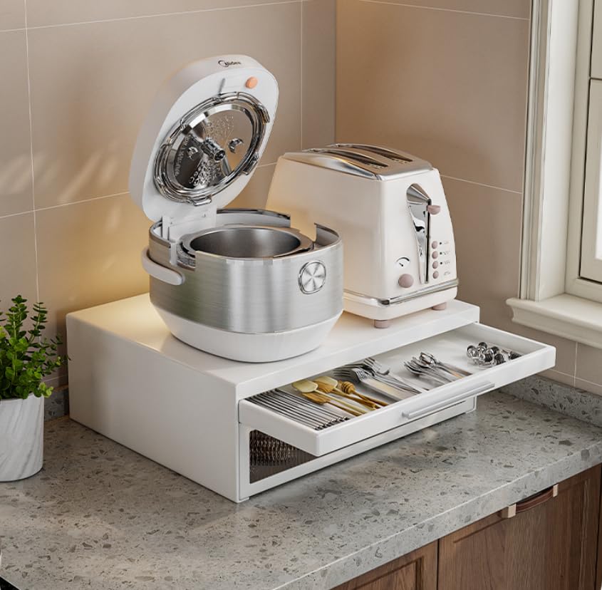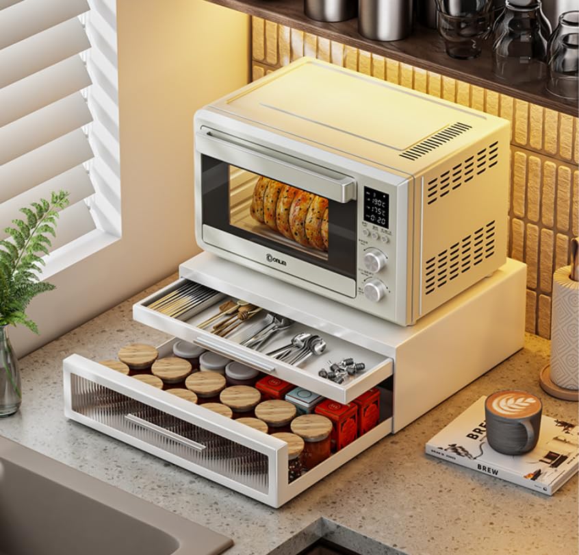 yazi キッチン 家電下引き出し 2段 レンジ下収納台 レンジ下スライドテーブル おしゃれなアクリル キッチン家電下ラック コンパクト トースターラック 作業スペース 幅42×奥行35×高さ14cm ホワイト
