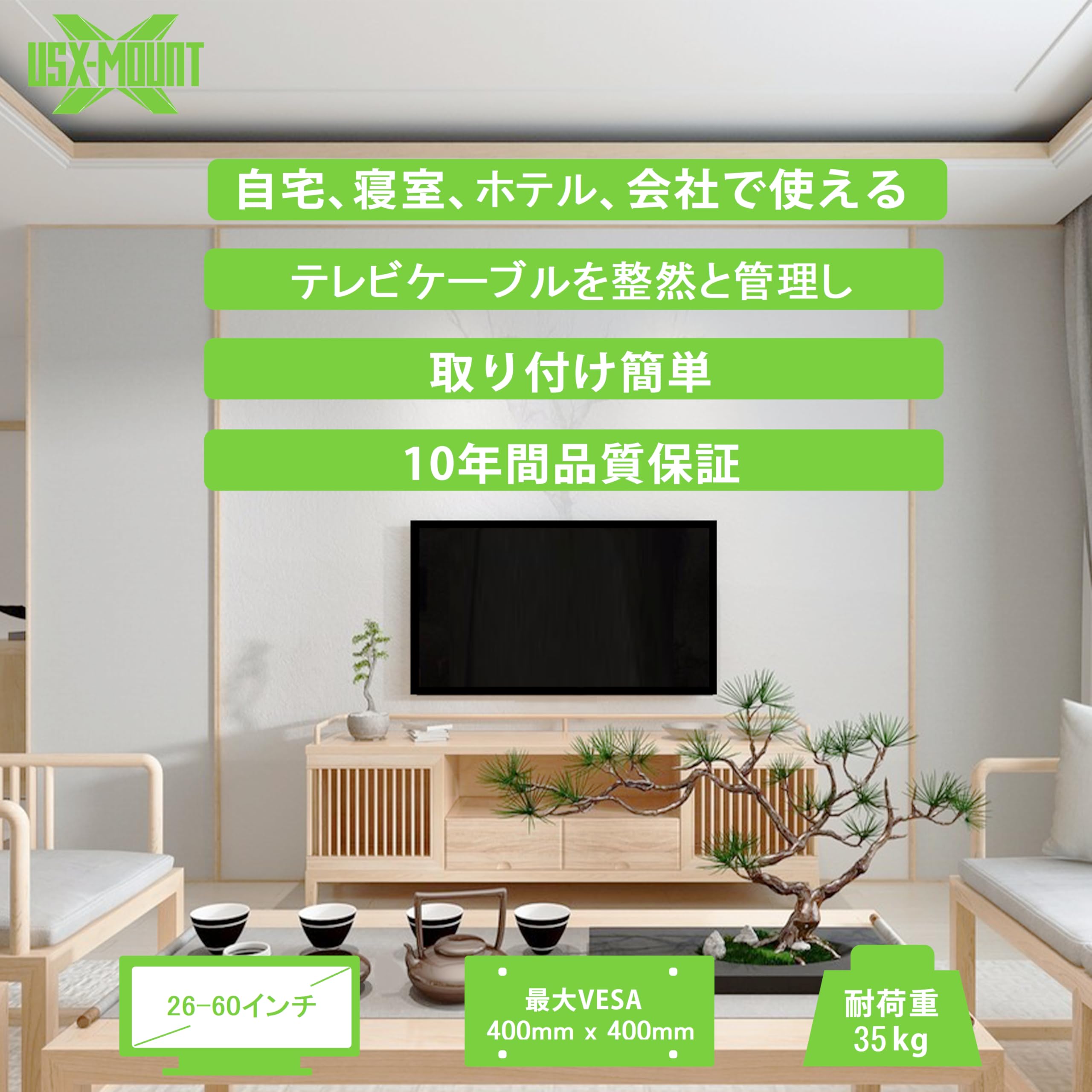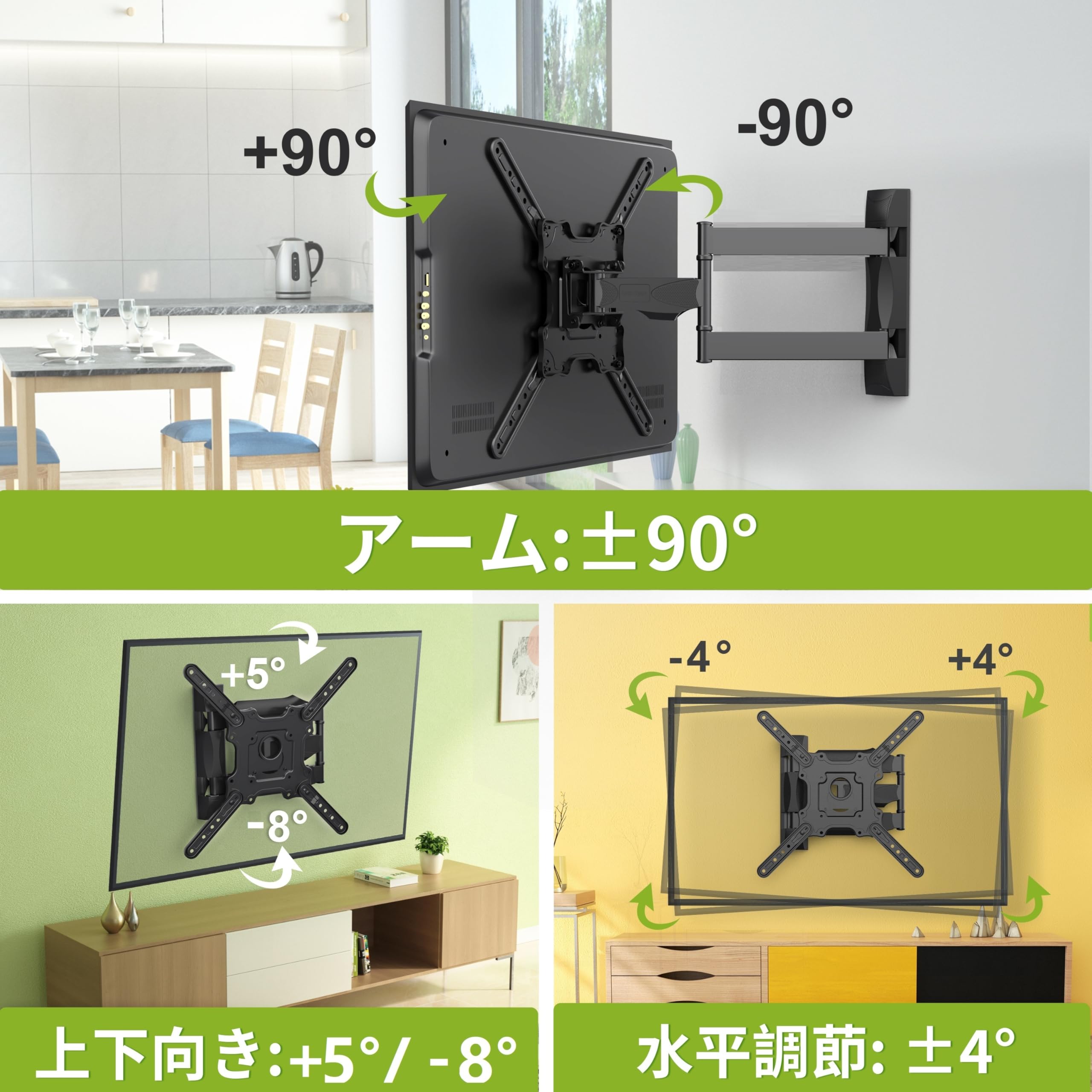 USX MOUNTテレビ壁掛け金具 長いアーム26-70インチ 中型 上下&左右&前後調節可能 移動式 壁掛け金具 tv壁掛け 耐荷重36kg VESA最大400×400mm対応 フルモーション式テレビかべかけ金具 アーム