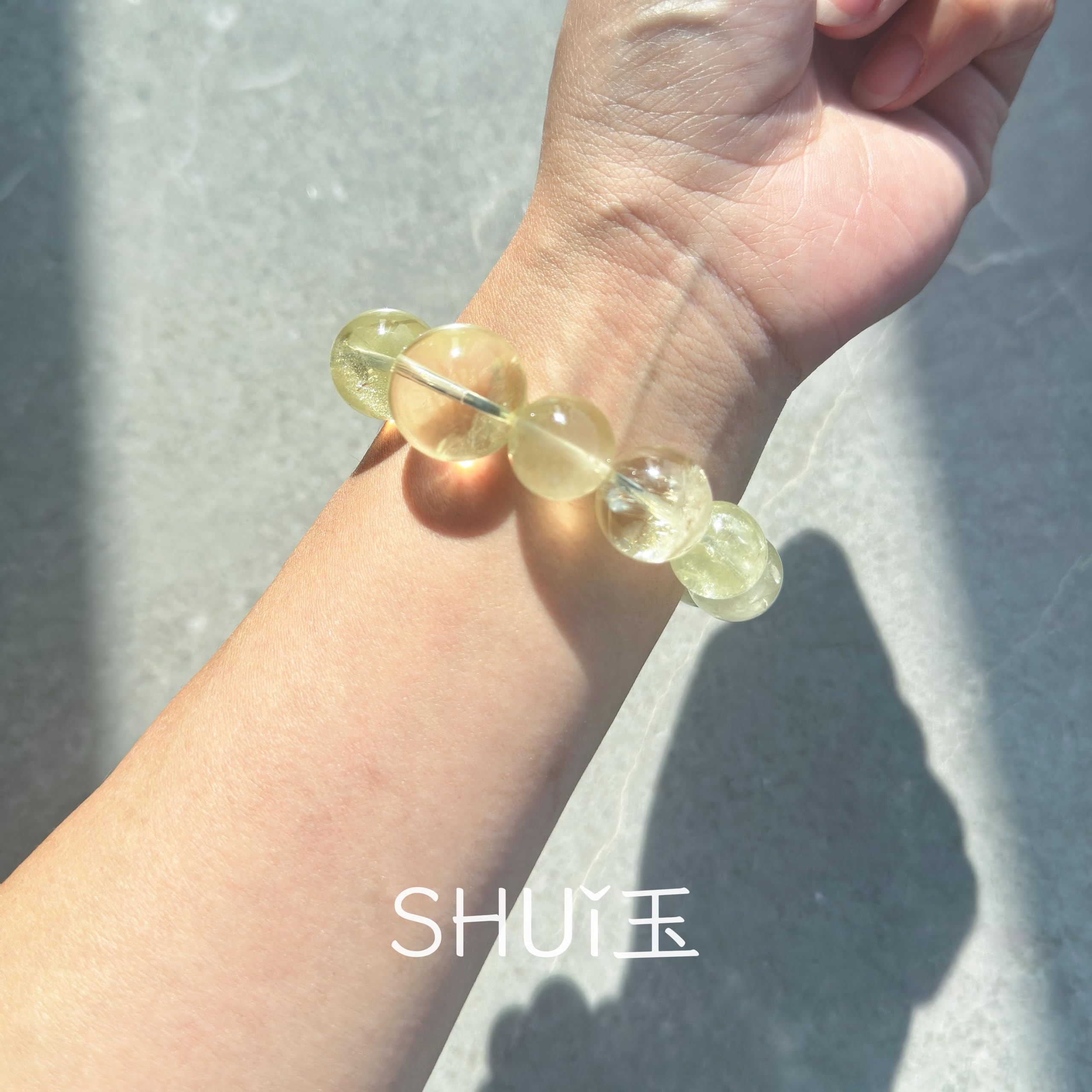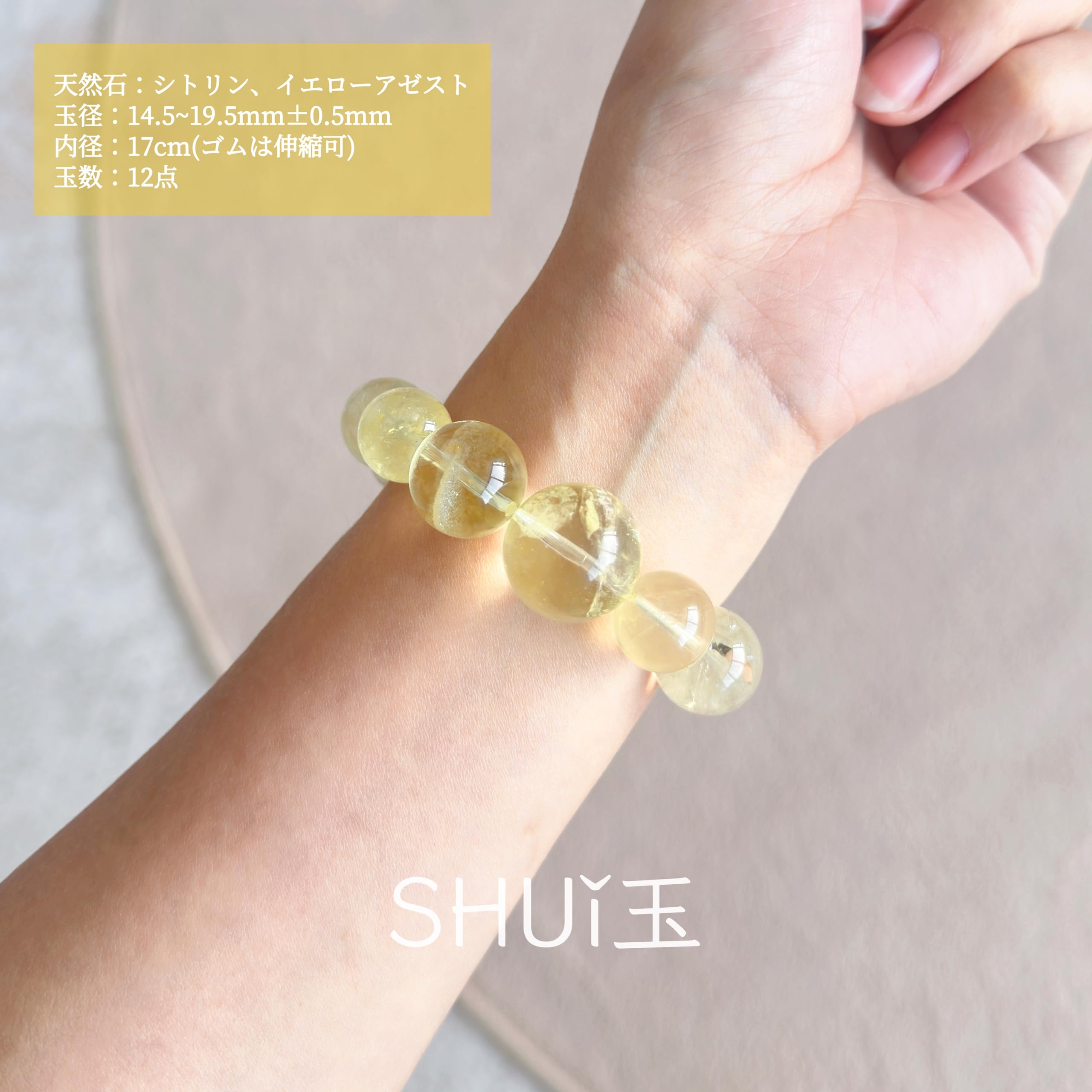 [SHUi玉] 天然シトリンブレスレット イエローアゼスト 黄水晶 クリスタル パワーストーン 天然石 誕生石 11月 射手座 大玉 14.5~19.5mm 手周り 17cmm 伸縮ゴム 調整可能 男女兼用 レディース メンズ ギフト用 ハンドメイド オリジナルデザイン 一点もの