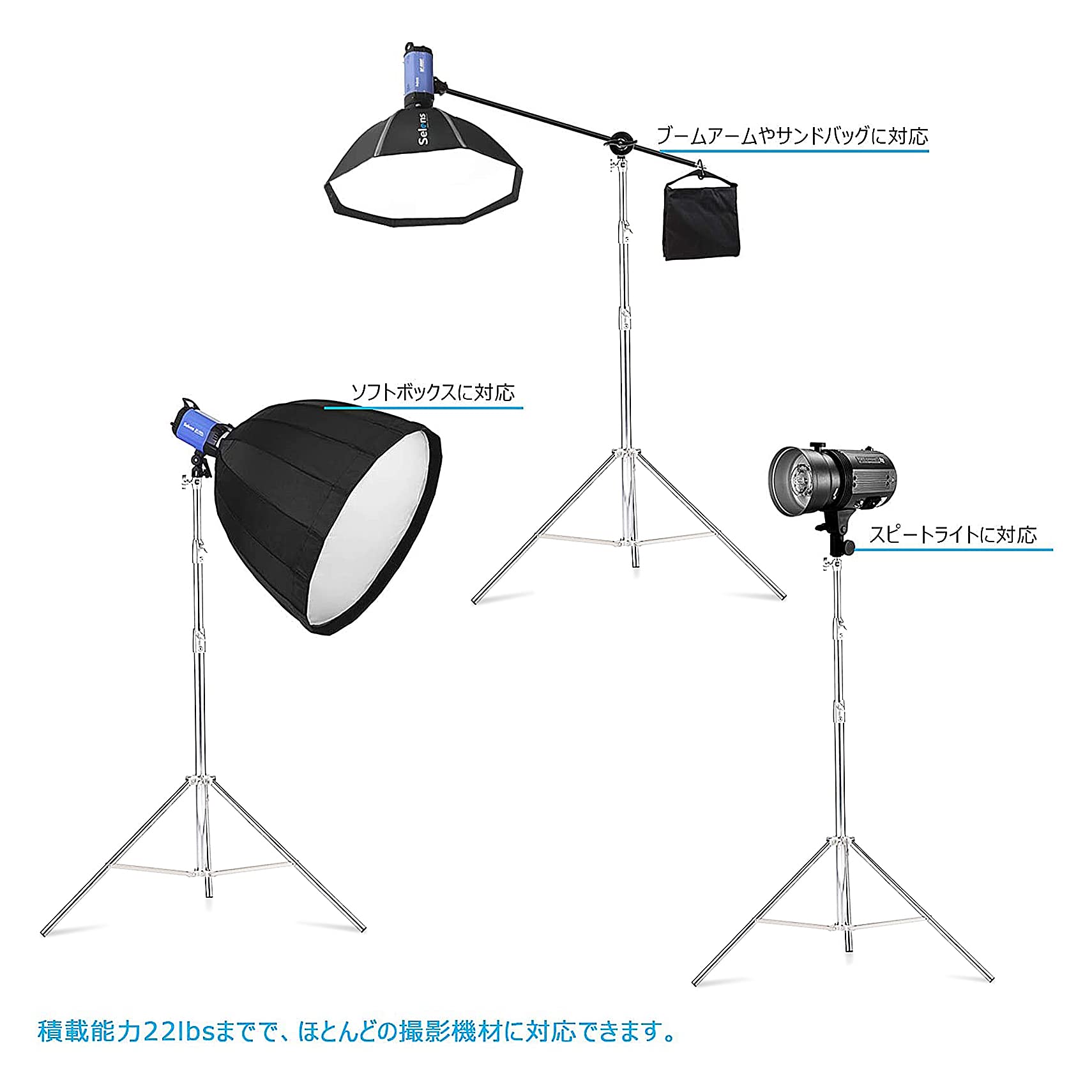 Meking 撮影用 ライトスタンド 220cm 高さ調節可能 1/4ネジ アルミ製 逆向き折り畳み スタジオ撮影 スピートライト ソフトボック レフ板に対応