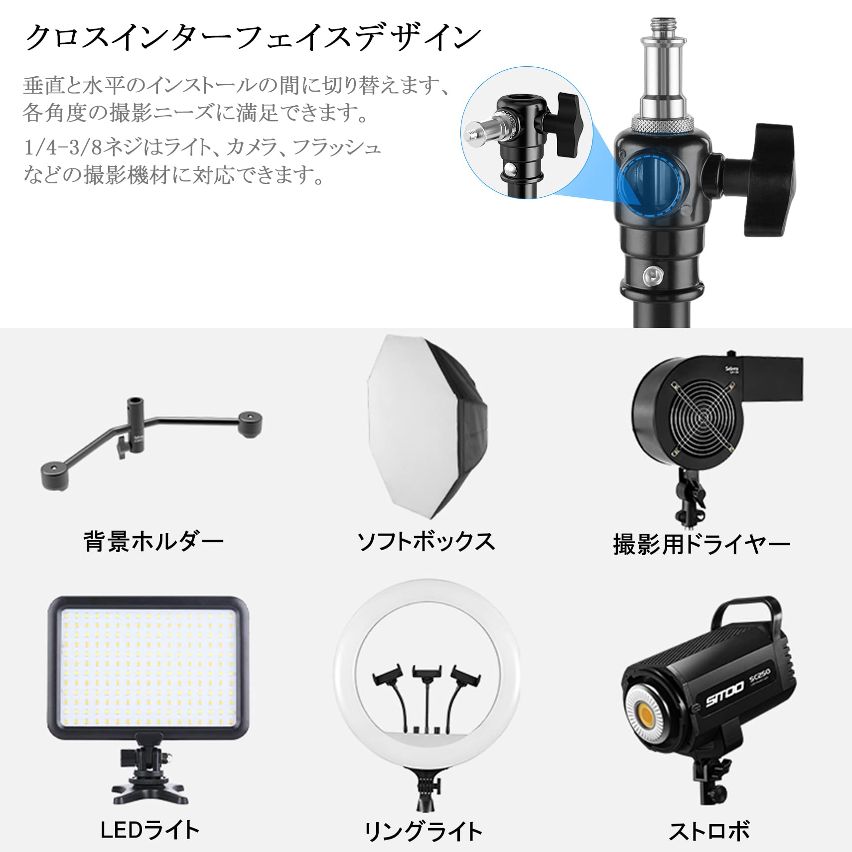 Selens ライトスタンドキット ステンレスチール製 220cm/6.6ft 高さ調節可能 耐荷重5kg 1/4-3/8ネジ変換 ランプスタンド 照明スタンド スタジオ撮影 ソフトボックス スピートライトなど対応