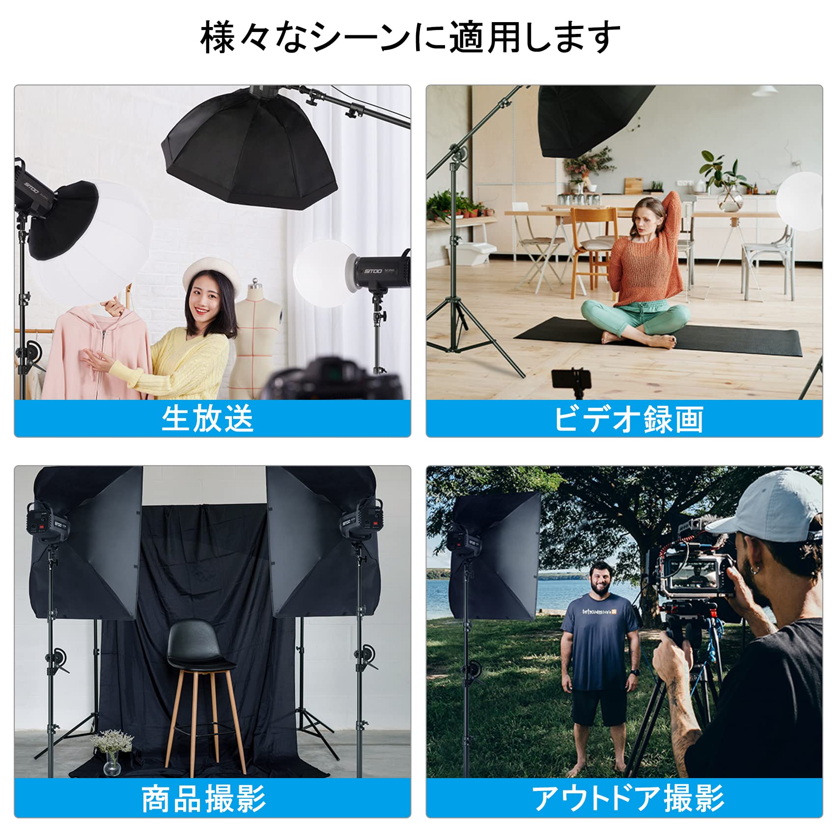 Selens ヘビーデューティライトスタンド 220cm エアクッションタイプ 1/4と3/ネジアダプター 高さ調整可能 ソフトボックス スピートライト リフレクター アンブレラなど対応 2本キット