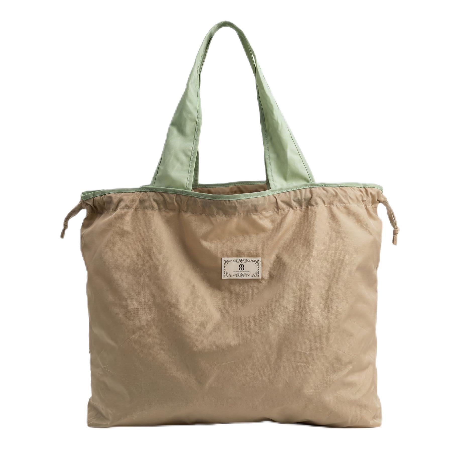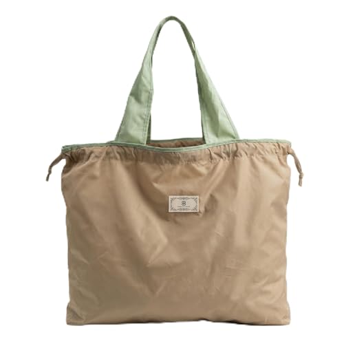 [MINNNANOTOKU] 環境に優しいショッピングバッグ。軽量(100g)、耐久性(25L)、コンパクトで折りたたみ可能。防水オックスフォード生地を使用。幅広のハンドル、内ポケット、引き紐付き。再利用可能で環境に優しい。パープル、ブラック、グレー、カーキ、ライトグリーンの5色展開。